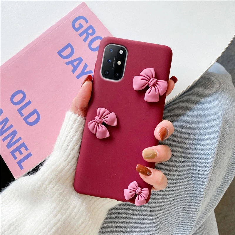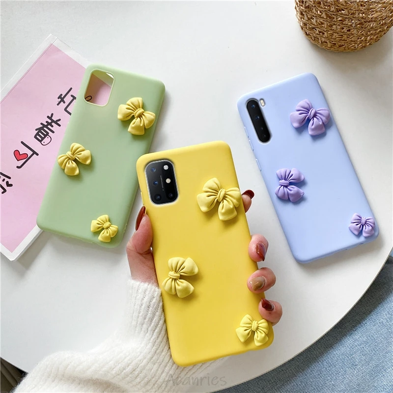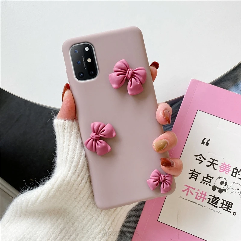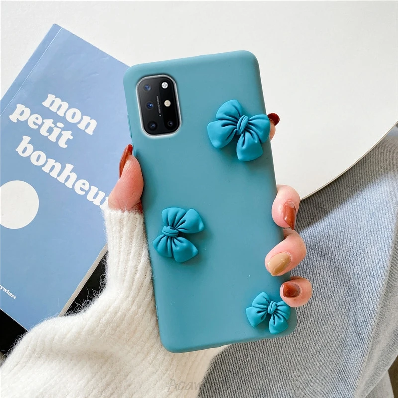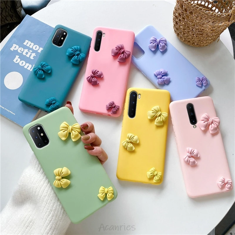 Карамельный Цвет 3d бантом Силиконовый чехол для мобильного телефона чехол на Oneplus 8T 8 Pro Nord 7T 7 Pro One Plus 6 6 комплектовпартия, 5T 5 матовый мягкий чехол из силикона и ТПУ для задней крышки