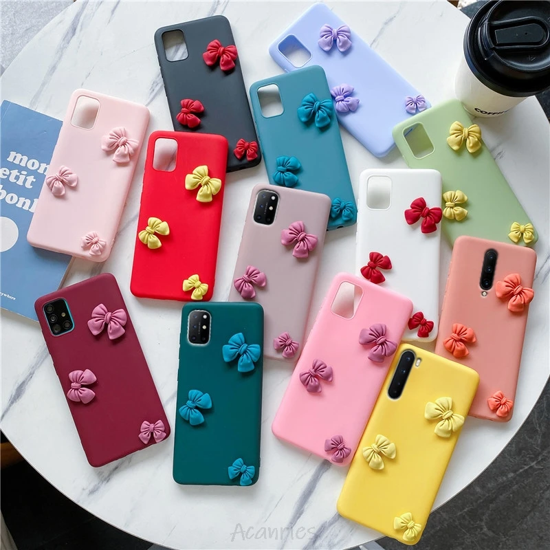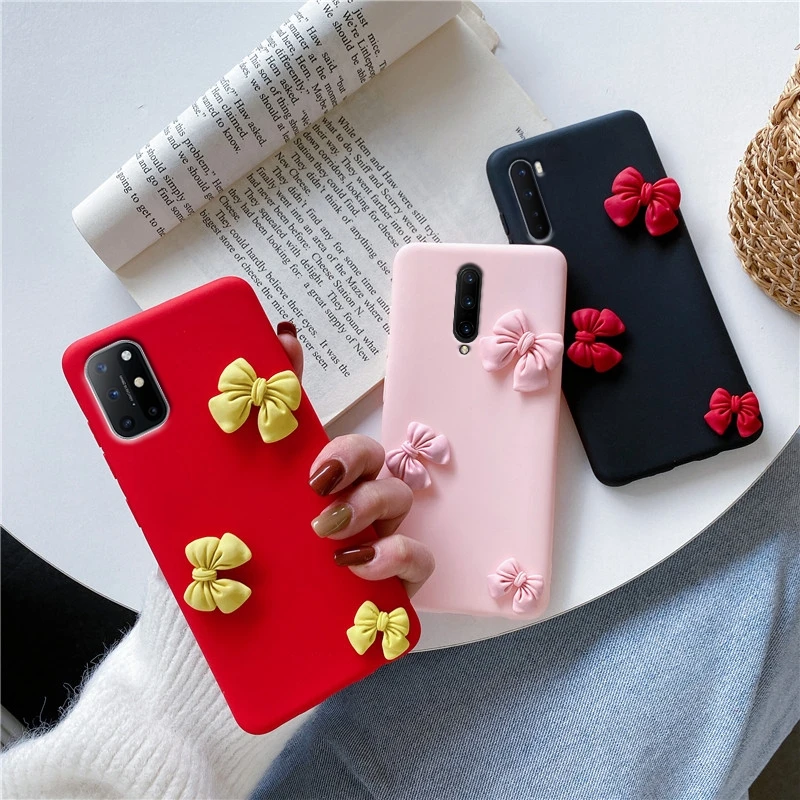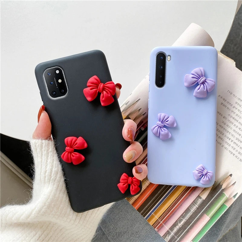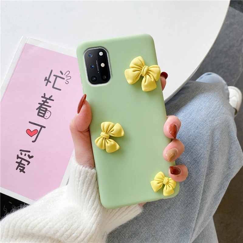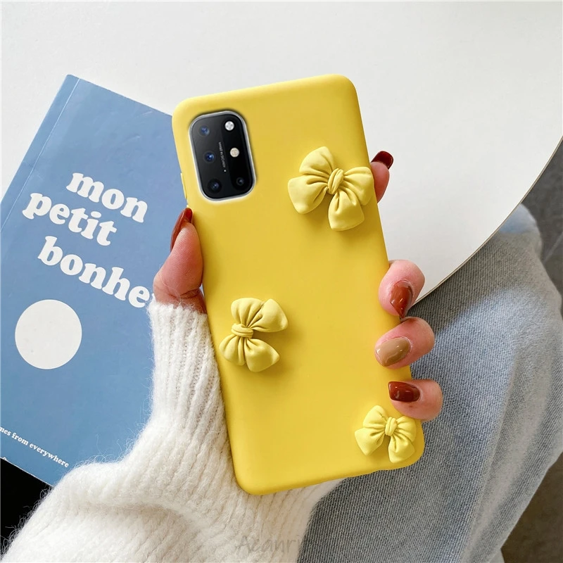 Карамельный Цвет 3d бантом Силиконовый чехол для мобильного телефона чехол на Oneplus 8T 8 Pro Nord 7T 7 Pro One Plus 6 6 комплектовпартия, 5T 5 матовый мягкий чехол из силикона и ТПУ для задней крышки