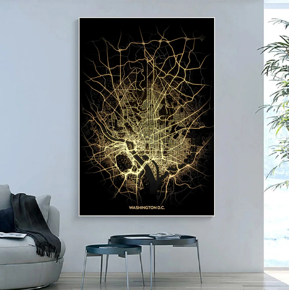 Карта городов мира, ночное виденье, дорожное освесветильник, тепловая карта, декоративная картина на холсте, плакат, коридор, исследование, художественное украшение