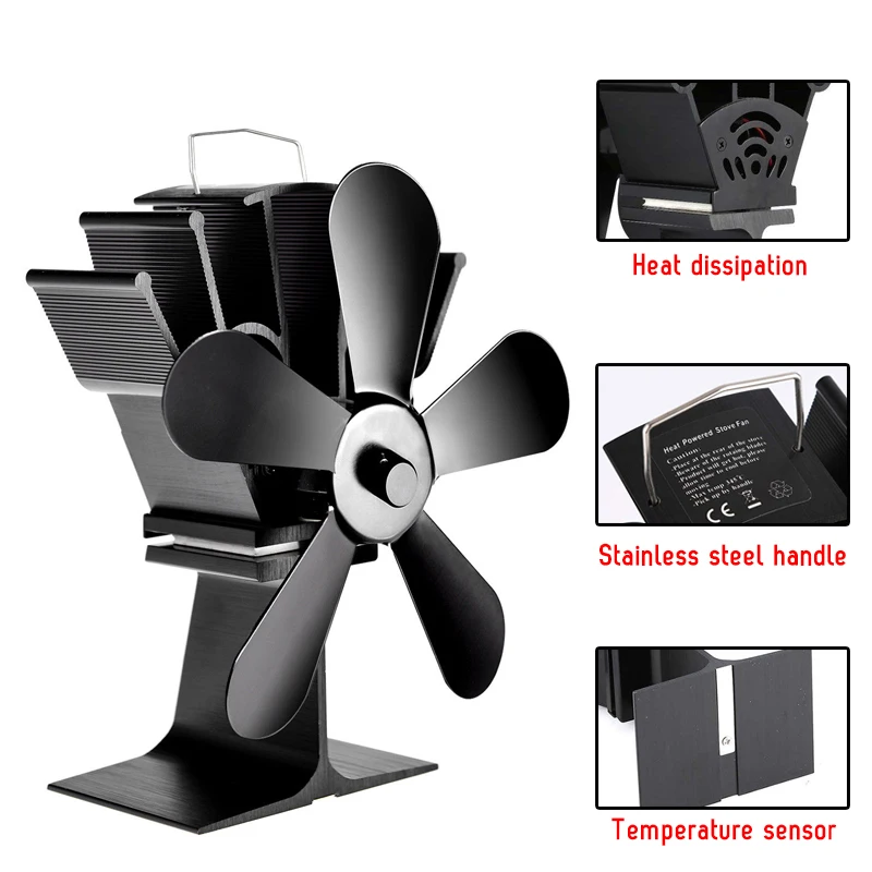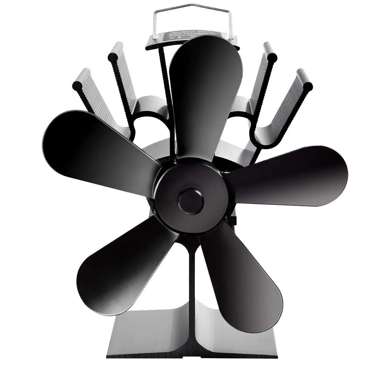 5 лопастей вентилятора черный вентилятор для камина 8,8 дюймов плита вентилятор для печи, работающий от тепловой энергии древесных бревен горелки Ecofan тихий вентилятор домашнего распределения тепла