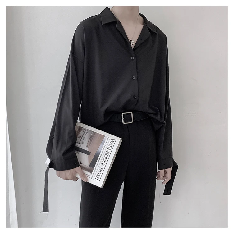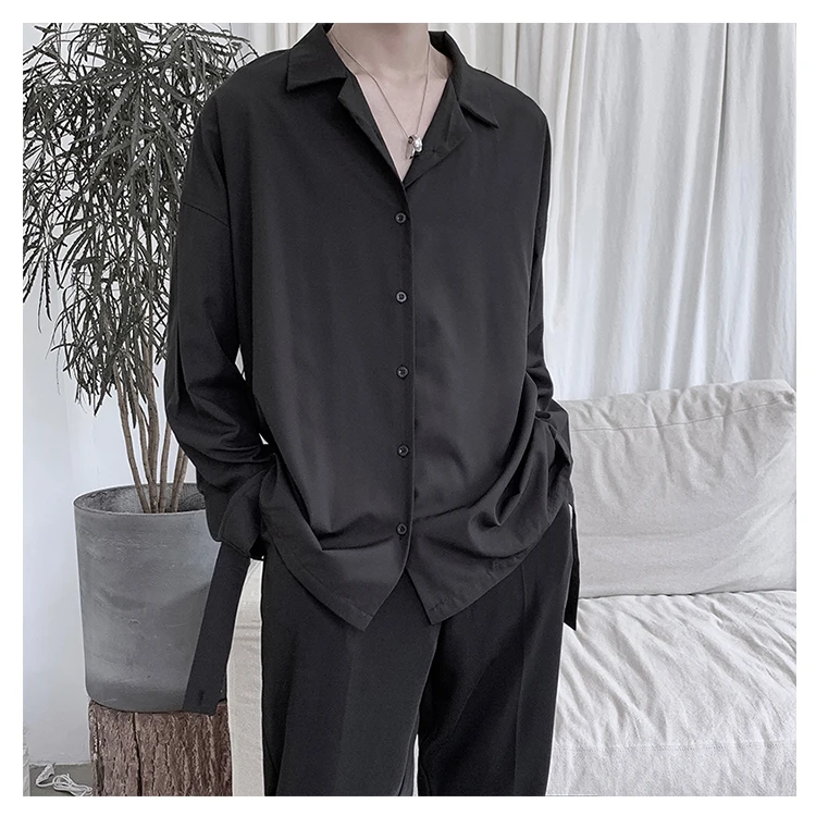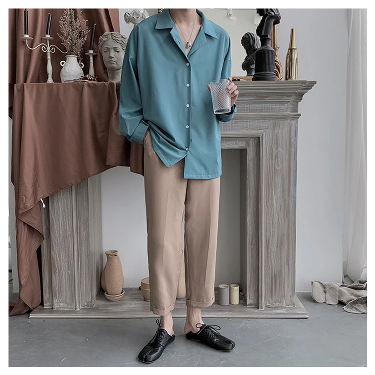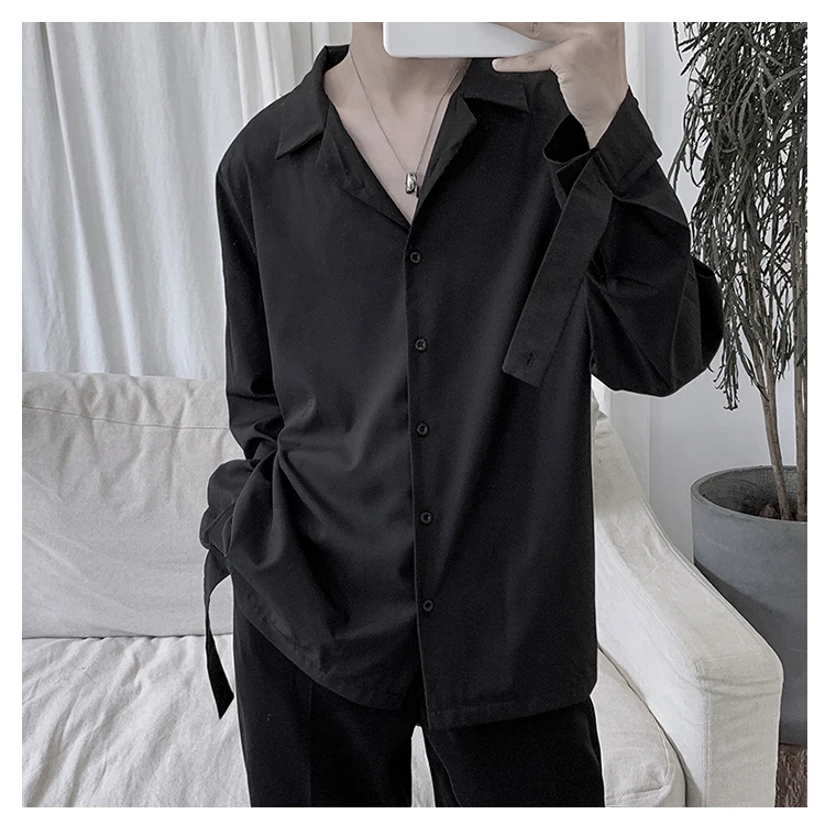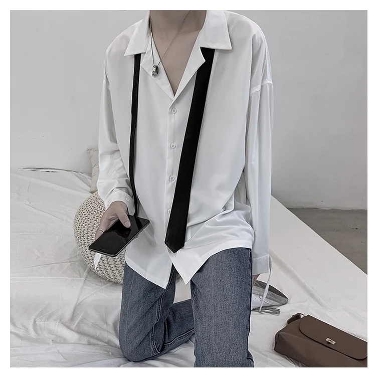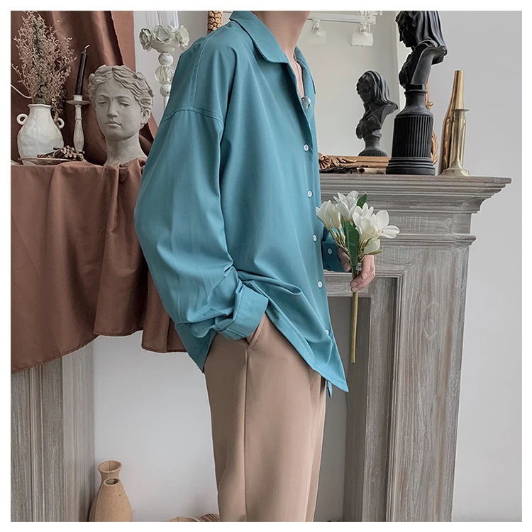 Рубашка мужская с длинным рукавом, модная однотонная деловая Повседневная Уличная одежда, свободная сорочка в Корейском стиле, весна