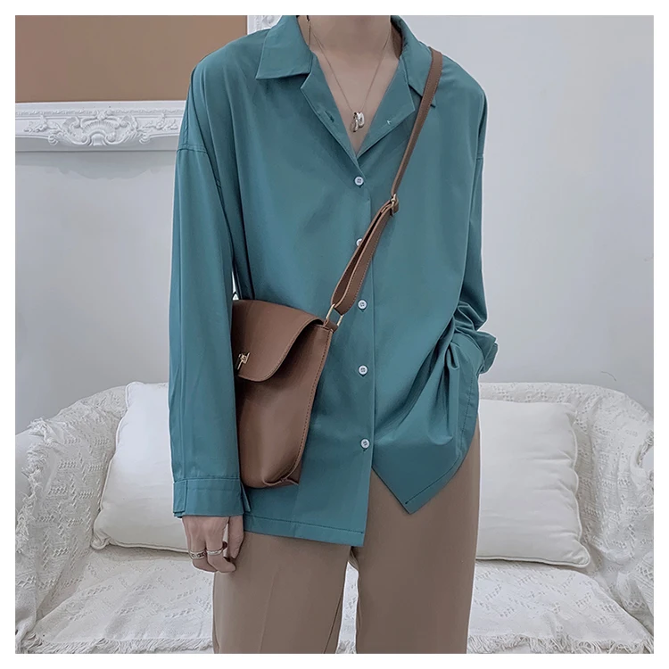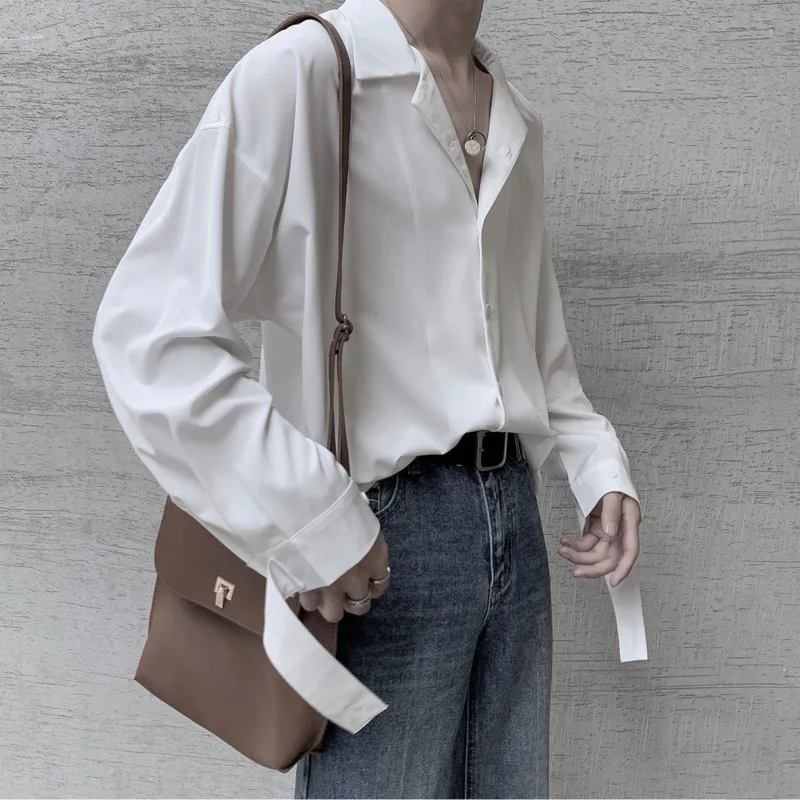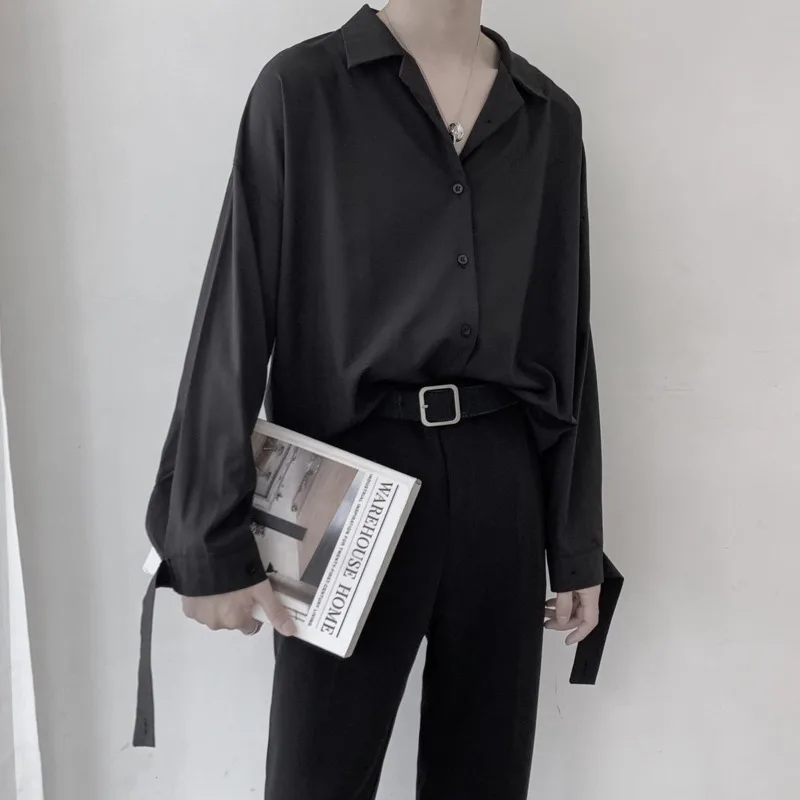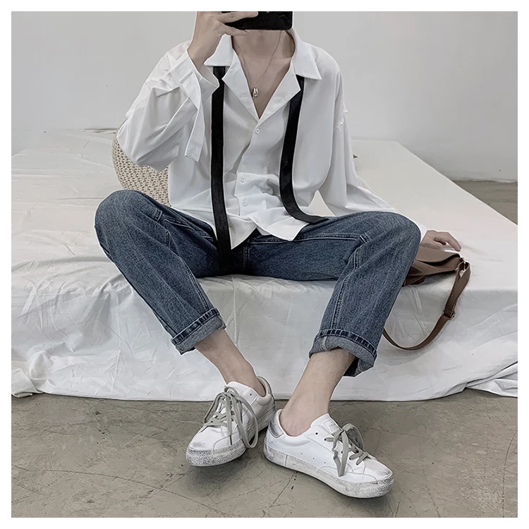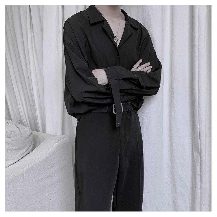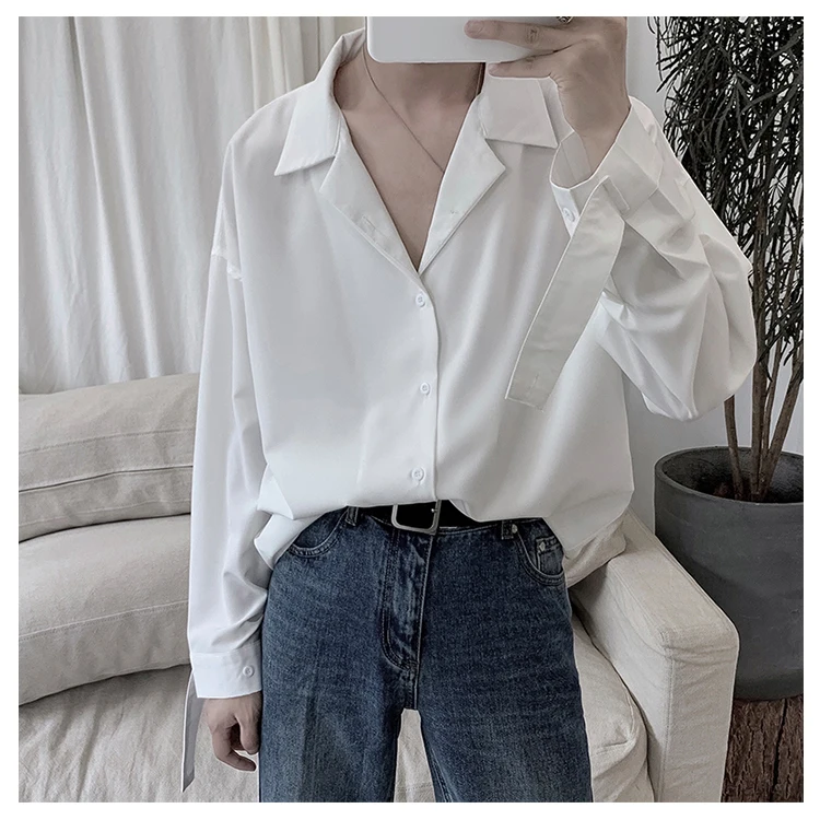 Рубашка мужская с длинным рукавом, модная однотонная деловая Повседневная Уличная одежда, свободная сорочка в Корейском стиле, весна