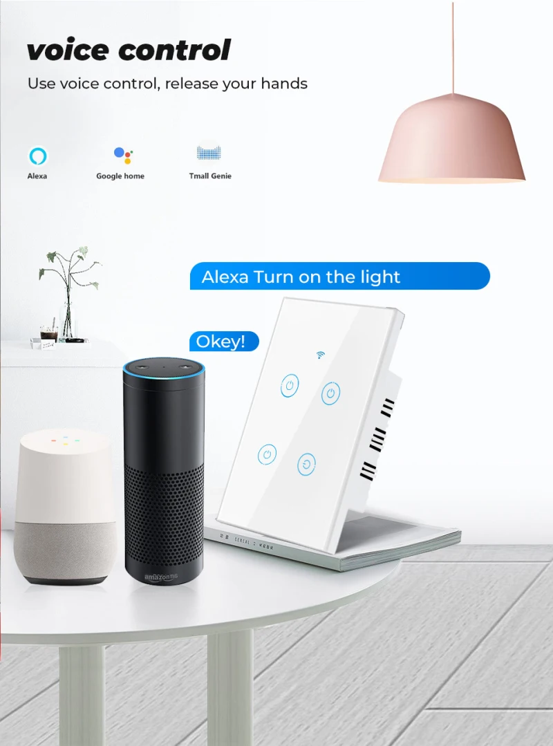 Коммутатор совместим с Alexa и Google Home Assistant, что позволяет