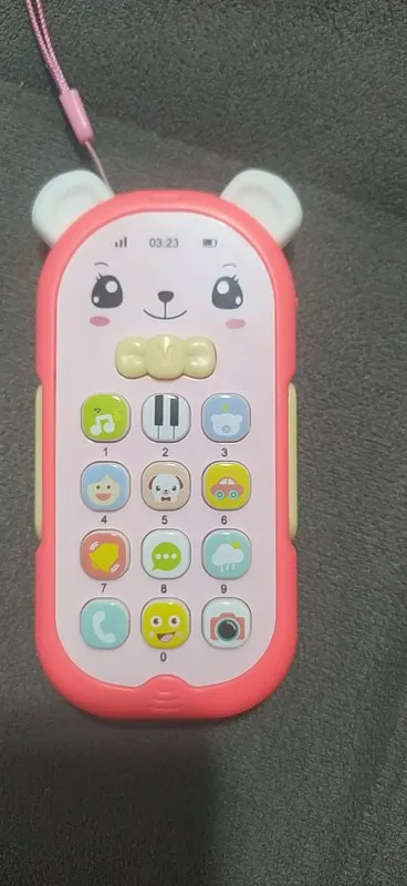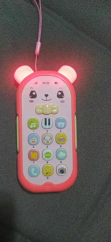 не плохой телефончик, батарейки вставлять самим. ушки светятся, мягкие модно грызть.