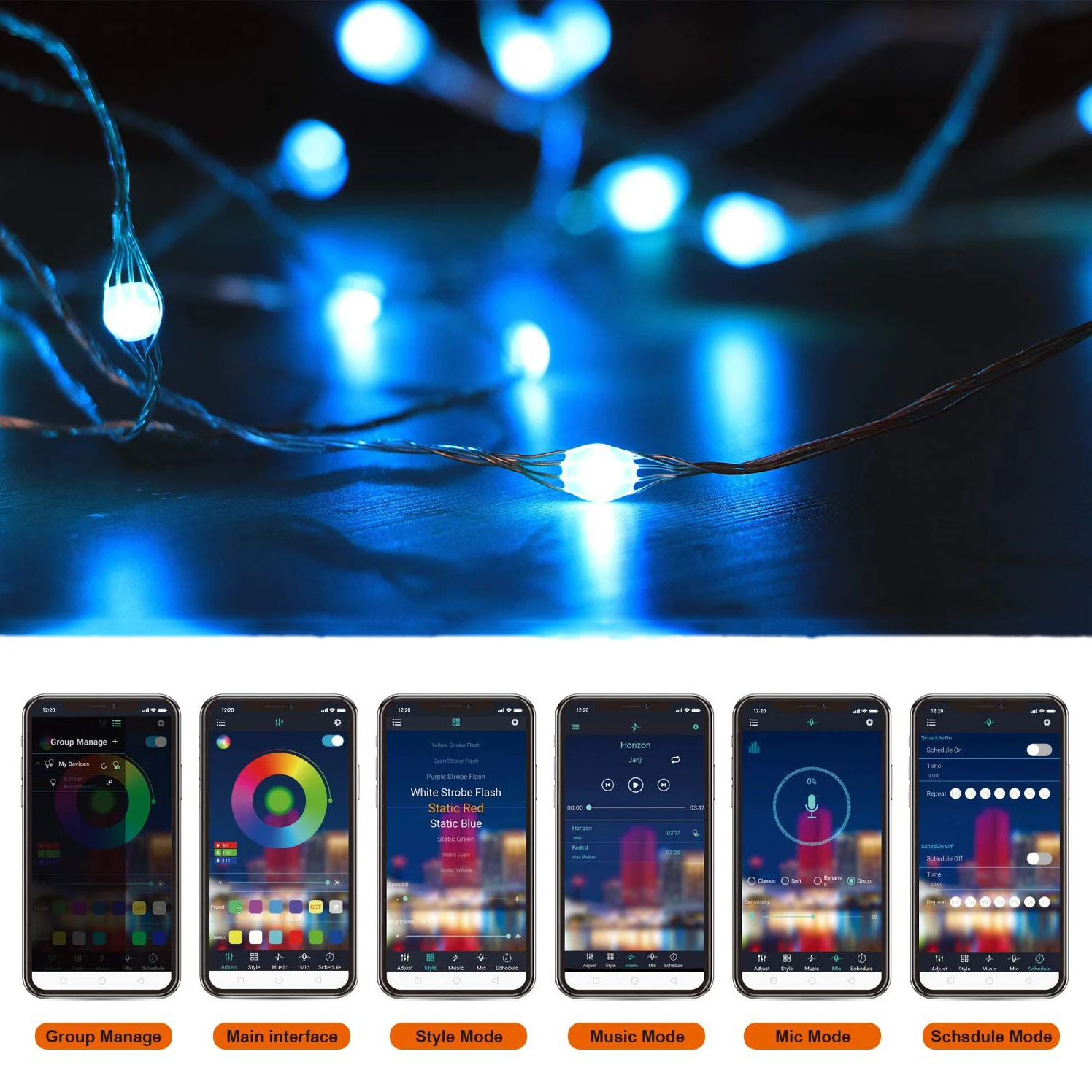Смарт 51020 м USB RGB меняющаяся гирлянда, Bluetooth App Контролиру...