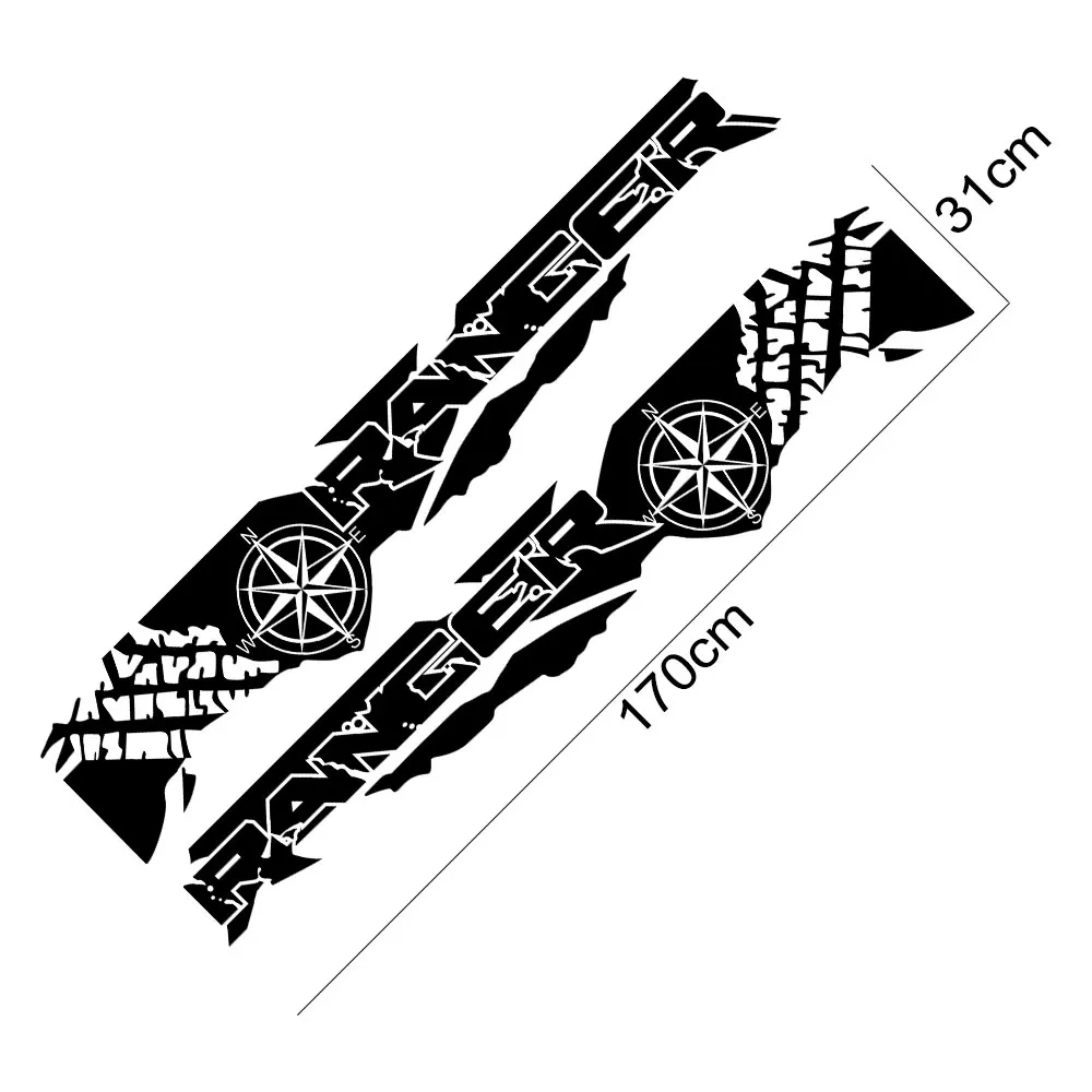 2 шт. наклейки для автомобиля с принтом шин компас графические виниловые наклейки для Ford Ranger Raptor аксессуары для пикапа