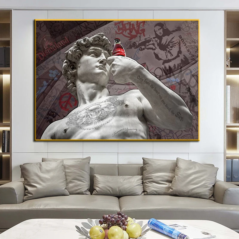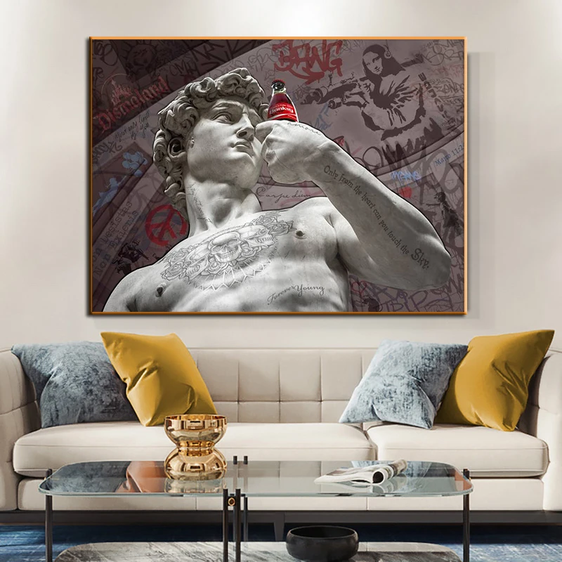 Абстрактная современная скульптура из статуй Давида, холст, плакаты...