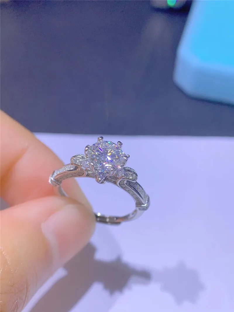 Серебро Круглый вырез 1 карат D Цвет Алмазный тест пройден отлично VVS1 Муассанит Королевский Кольцо Новый Дизайн Свадебные серебро 925 ювелирные изделия