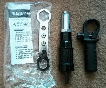 Электрическая дрельПродуктАдаптер-профессиональный набор инструментов для заклепок с алюминиевым литьевым корпусом и нескользящей Handle-4pcs откидной головкой и гаечным ключом.ПродуктМеталлический адаптер имеет более низкий уровень шума, более эффективный, малый размер и удобен в переноске, универсальное сверлильное крепление для легкого нанесения гаек на различные материалы.
