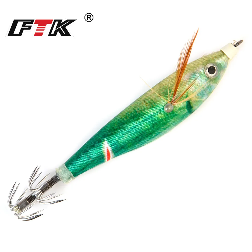 Приманка для рыбалки от FTK 90 мм, острый крючок для кальмара, светящиеся приманки, приманки для рыбалки, осьминог, деревянная приманка, каракатица