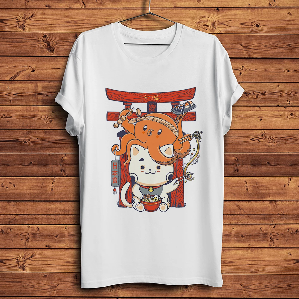 Япония винтажная кошка кайдзю забавная Футболка мужская летняя нова...