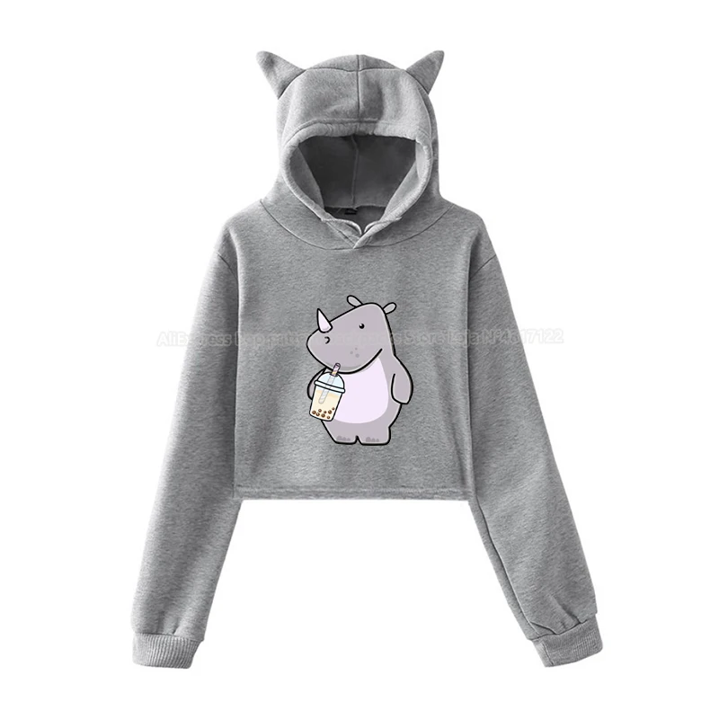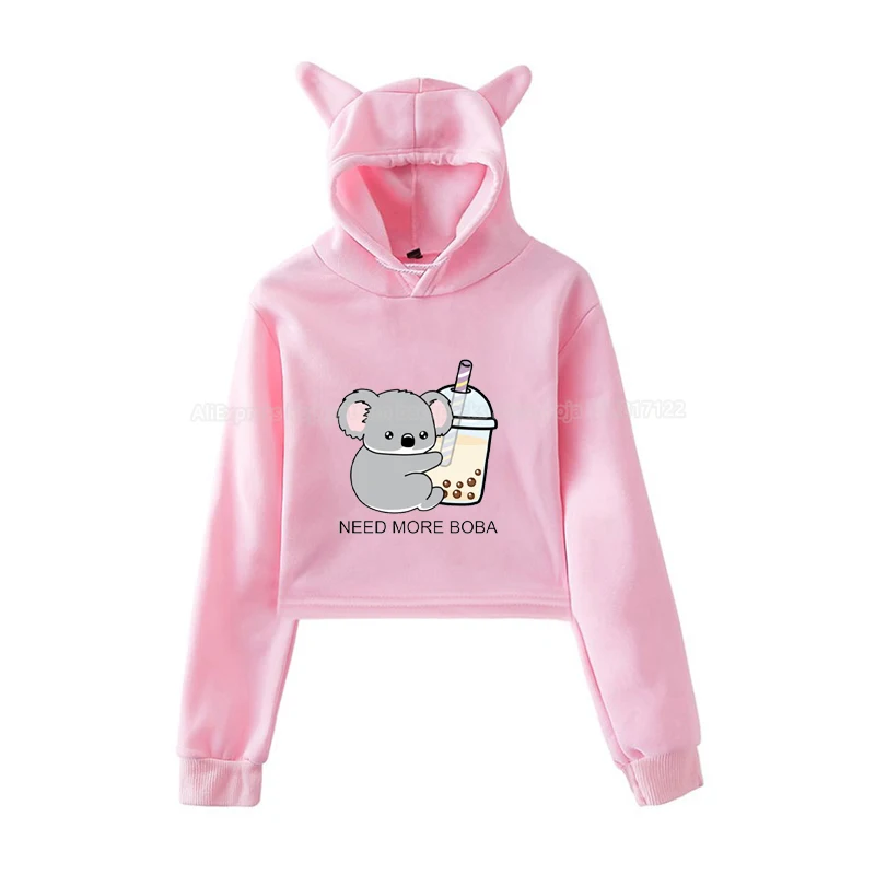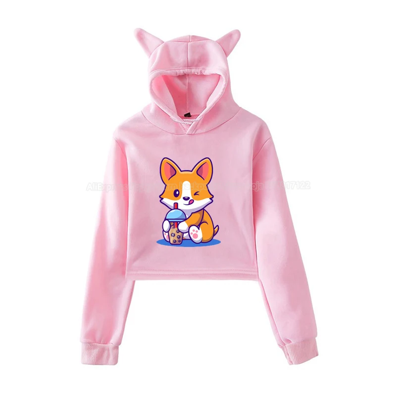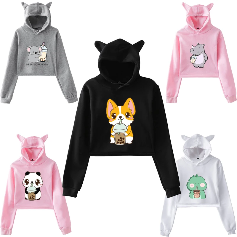 Модные розовые толстовки с кошачьими ушками с животными Boba, женские укороченные пуловеры с кошачьими ушками, Женский мультяшный свитшот, уличная одежда в стиле хип-хоп для девушек