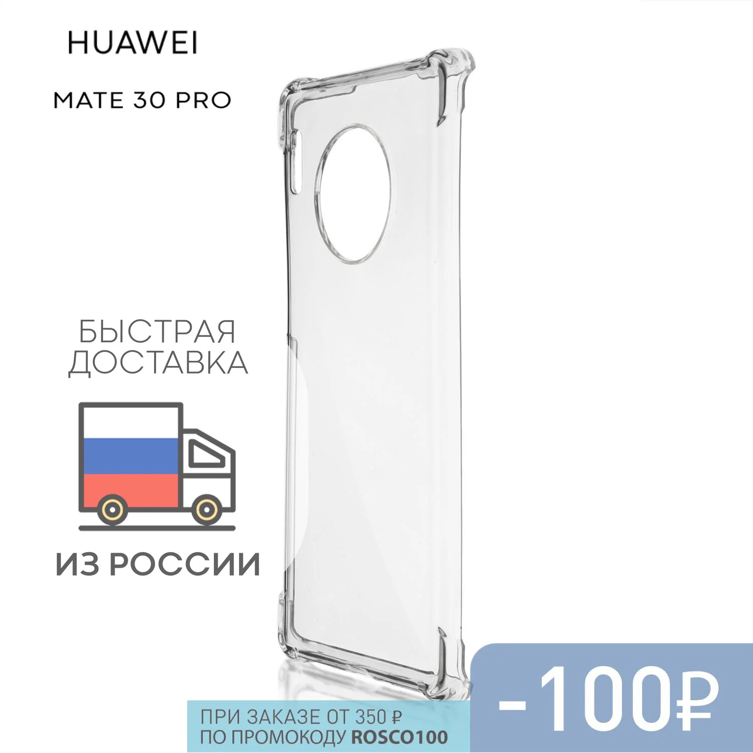 Противоударный чехол ROSCO для Honor Huawei Mate 30 Pro силиконовый с усиленными углами и бортиком-защитой вокруг модуля камер