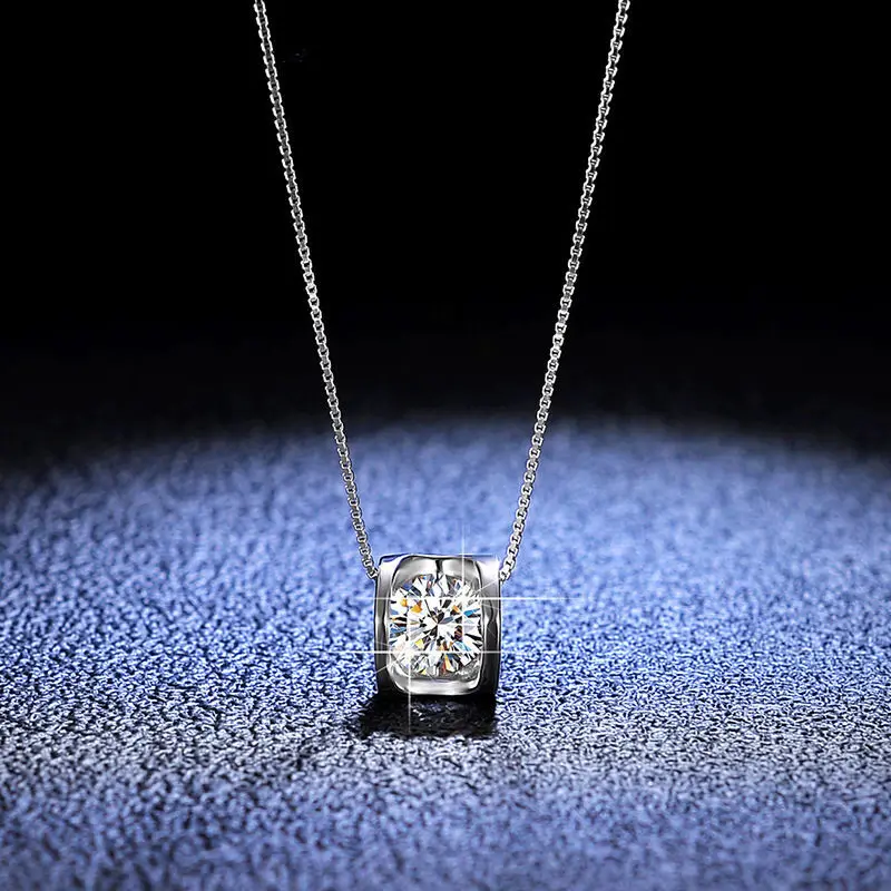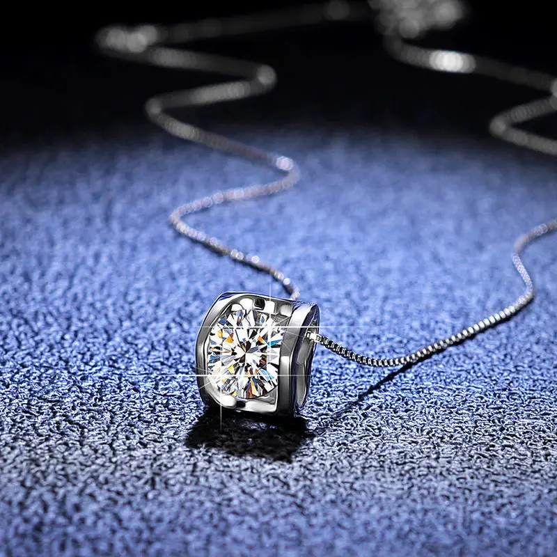 Ожерелье с кулоном из серебра 925 пробы с муассанитом, 1 карат