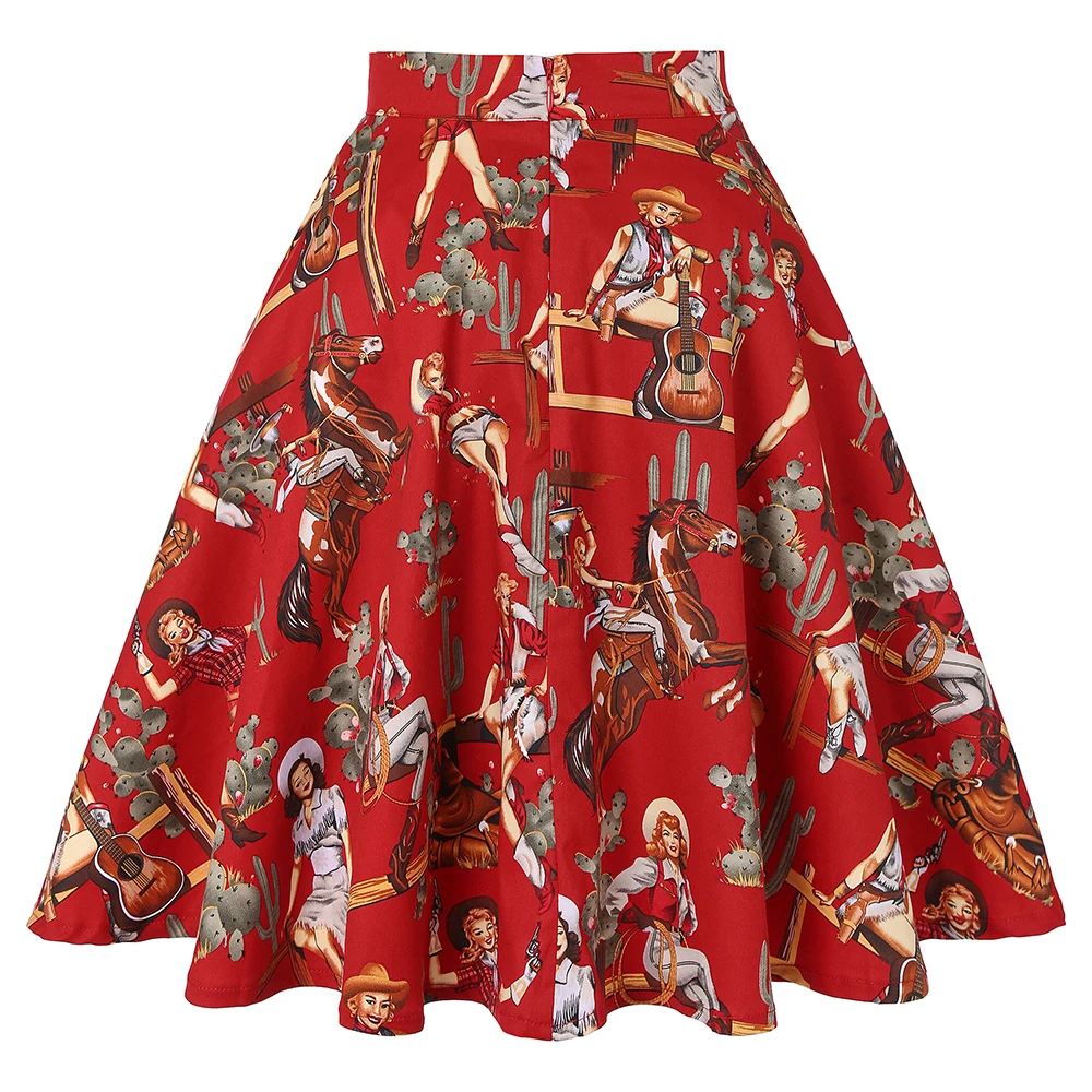 2021 Ретро Винтажные женские юбки лето весна Повседневный Сарафан с высокой талией расклешенные трапециевидные Юбки До Колена на молнии сзади 50s