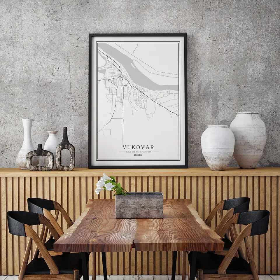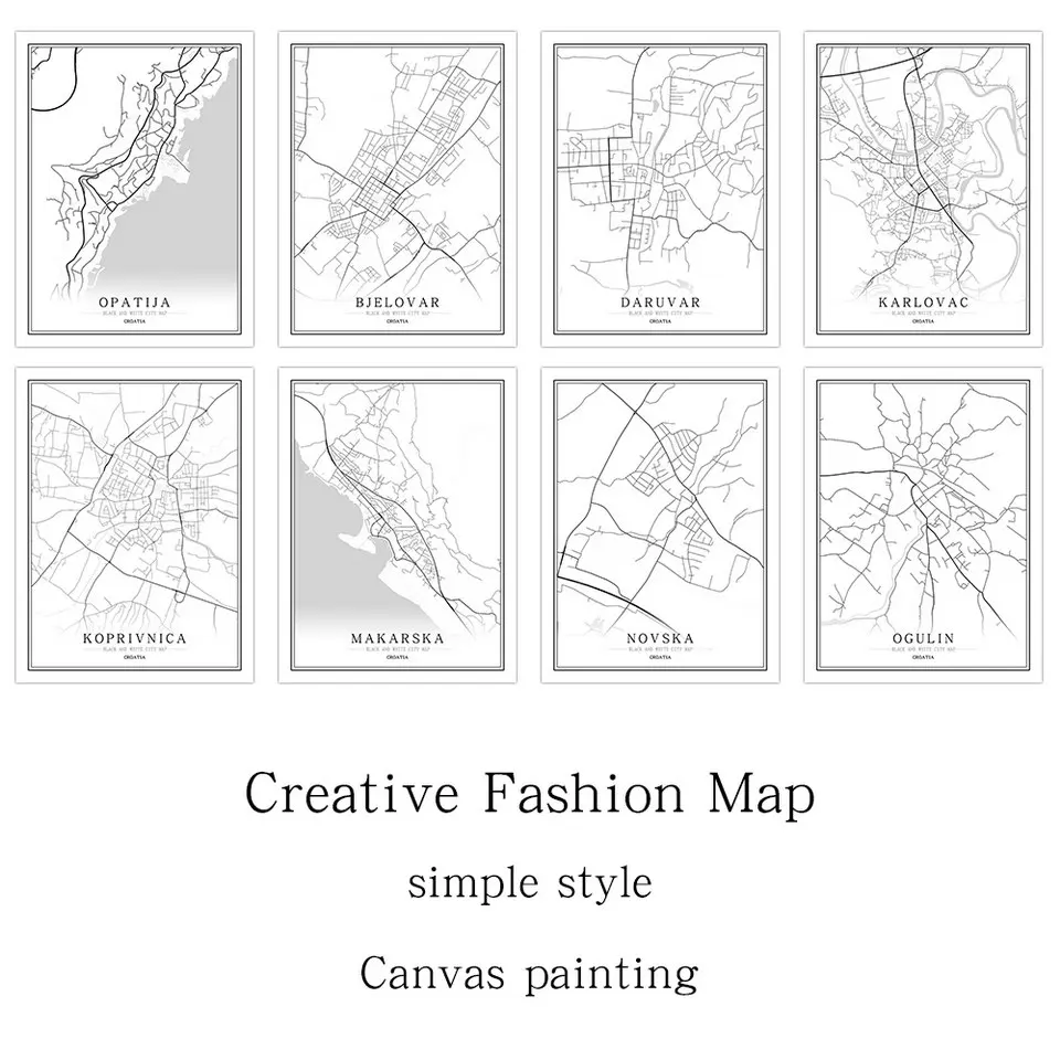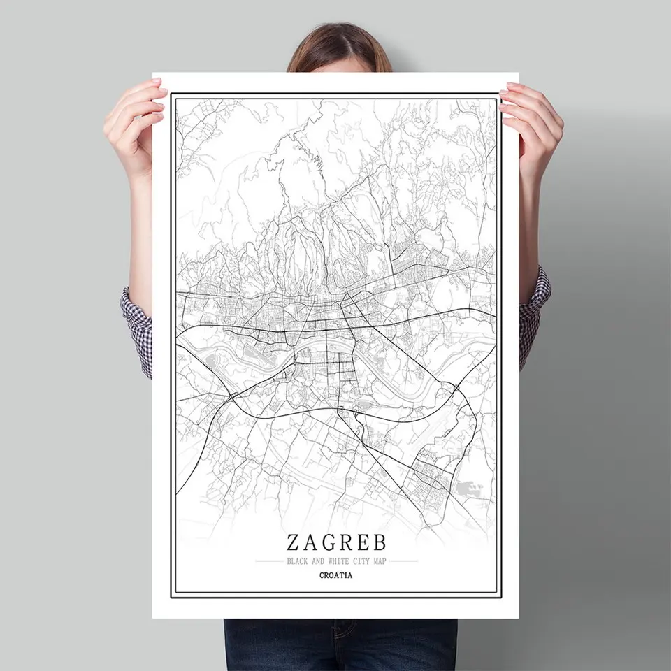 Хорватия черный, белый цвет карта городов мира плакат Nordic Гостиная Загреб Шибеник пула настенные картины на холсте для домашнего декора живопись