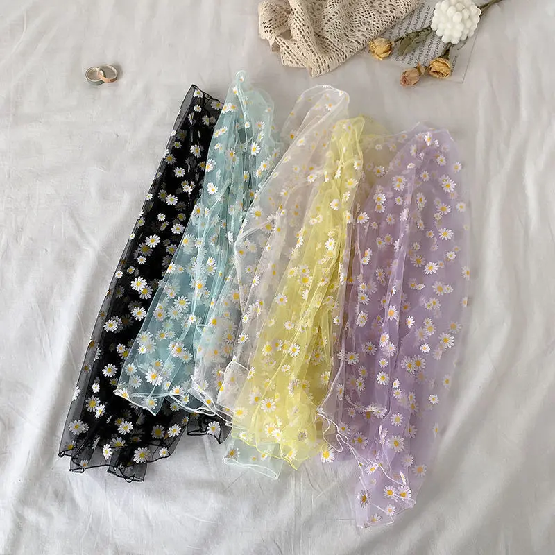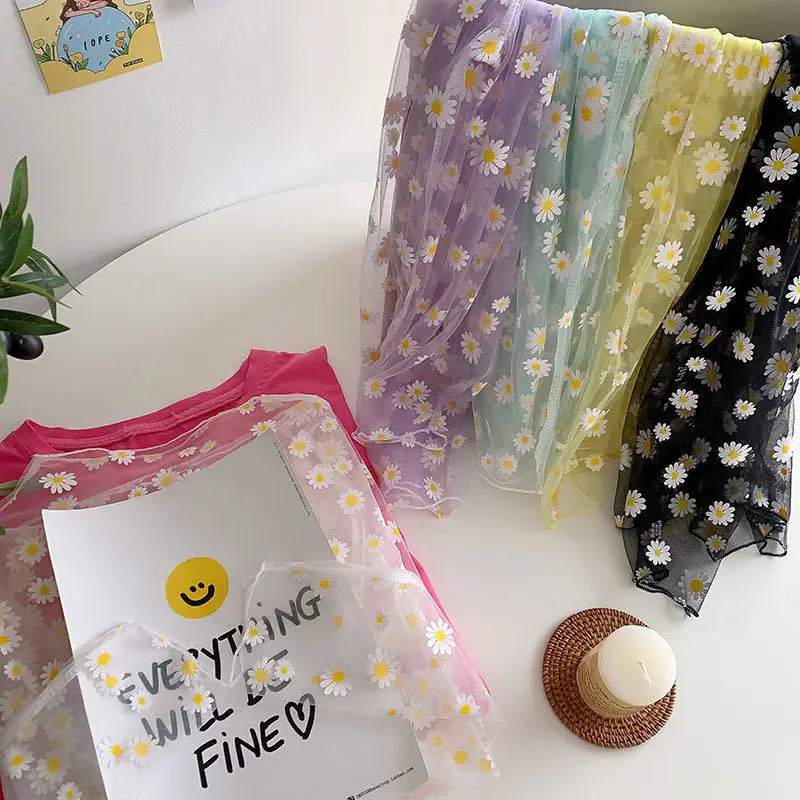 Женская Сетчатая футболка с длинным рукавом ruory, белая Сетчатая футболка в Корейском стиле с принтом Маргариток и цветов на лето