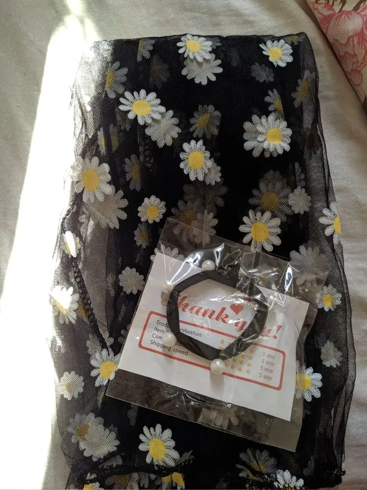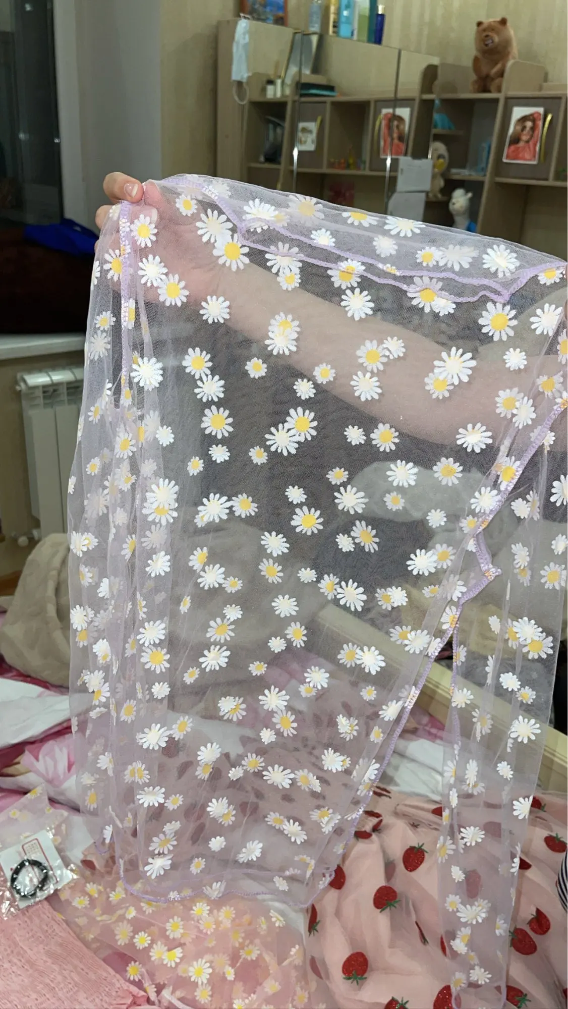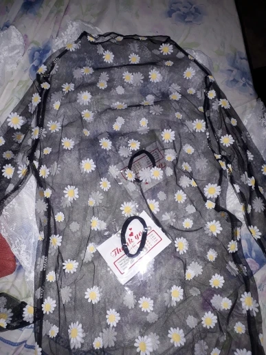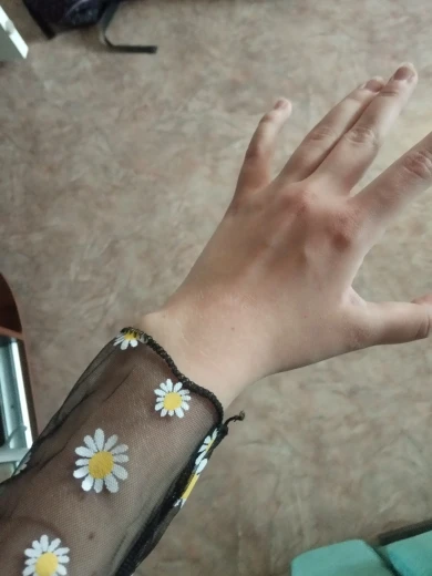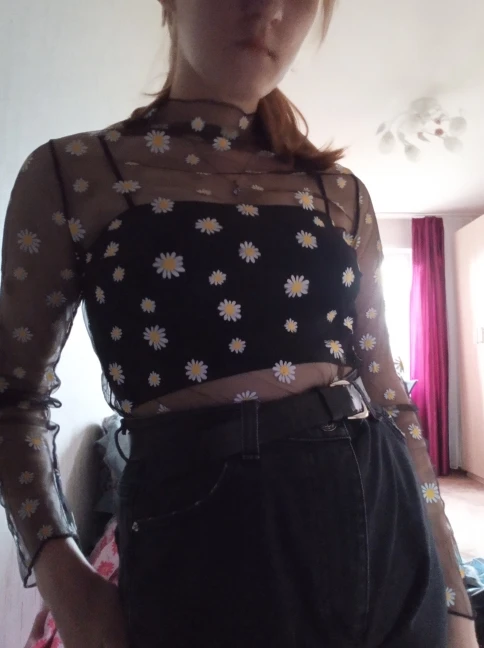 Пришло чуть меньше, чем за месяц. Хороша на лето, однако сильно колится в местах, где находятся швы. Ромашки целы, думала, что они осыпятся, но все хорошо. Она достаточно свободная и тянущаяся, однако рукава короткие. В подарок положили резинку
