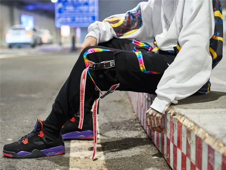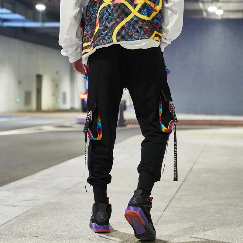 Брюки-карго мужские в стиле хип-хоп, уличная одежда, Джоггеры в стиле Харадзюку, повседневные брюки, уличные эластичные шаровары, спортивная одежда с лентой