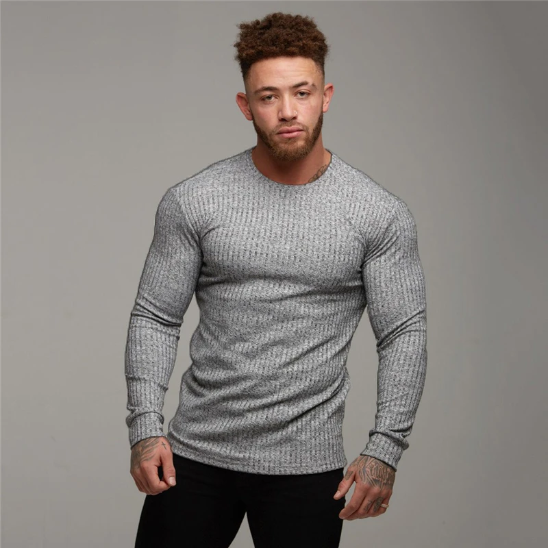 Мужской трикотажный свитер с круглым вырезом, приталенный силуэт