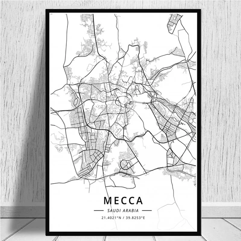 Карта путешествий Нью-Йорк, Манчестер, Мекка, карта мира, картина м...