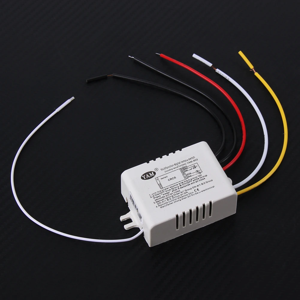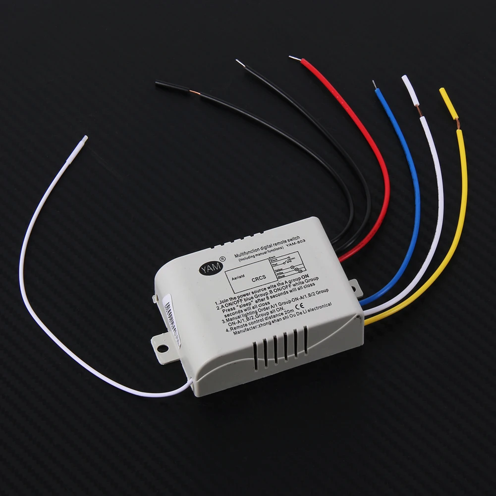 Особенности:Идеально подходит для дистанционного управления подвесной светильник, хрустальная лампа, современная лампа низкого давления, поглощающий купольный светильник, дневная Цветочная лампа, люминесцентная лампа, энергосберегающие лампы, вытяжной вентилятор, светодиодный светильник и т. Д.Быстрая и простая установка, не мешает стенам, способная соединять любые нагрузки. Пульт дистанционного управления и переключатель можно использовать одновременно для удобства и гибкости.Каждый набор переключателей дистанционного управления имеет свой специальный код. Больше комплектов можно использовать в одной комнате без помех.Односторонний пульт дистанционного управления:Функция:Включение/выключение и а, Функция включения и выключения. (B-пустой ключ, без эффекта)Нажмите спящий, светильник мигает один раз. Затем не перемещайте пульт дистанционного управления и не выключайте его примерно за 8-12 секунд.Характеристики:Расстояние дистанционного управления: в пределах 30 мВходное напряжение: 180-240 ВНагрузка на каждый порт: люминесцентная лампа: 600 Вт; Энергосберегающая лампа: 300 ВтРабочая температура: -20c + 60cМатериал: АБС-пластикРазмеры: дистанционный пульт: 11 м * 4,2 см * 1,5 см; Основное устройство: 6,0 см x 4,5 см x 2,5 смМощность: 12V 23A батарея (не входит в комплект)Двусторонний пульт дистанционного управления:Функция:1. A/1 будет светильник после включения.2. A/1 используется для включения/выключения синей группы, B/2 используется для включения/выключения зеленой группы, «ВКЛ.»/«Выкл.» означает включение/выключение всего элемента.3. Ручное освещение (управление настенным переключателем): A / 1 , B / 2, вся цепь будет включена.Характеристики:1. Каждая группа может нести 1000 Вт накаливания Светильник лампы и 300 Вт энергосбережения лампы.2. Рабочее напряжение: AC180V-240V50Hz/60 Гц3. Пульт дистанционного управления Управление Батарея: 12V 23A Батарея (Батарея не включена в комплект)4. Расстояние дистанционного управления: 30 м5. Мощность нагрузки: 16. Активная нагрузка: самая большая выходная мощность в одну группу в 3000W.(как лампы накаливания светильник или светильник лампы и т. д.)Трехходовой пульт дистанционного управления:Функция:1. A/1 будет светильник после включения.2. A/1 используется для включения/выключения синей группы, B/2 используется для включения/выключения белой группы, C/2 используется для включения/выключения желтой группы, «ВКЛ.»/«Выкл.» означает включение/выключение всего товара.3. Ручное освещение (управление настенным переключателем): A/1 , B/2 , C/3, вся цепь будет включена.Характеристики:1. Рабочее напряжение: AC180V-240V50Hz/60 Гц2. Удаленный доступ Управление Батарея: 12V 23A Батарея (Батарея не включена в комплект)3. Расстояние дистанционного управления: (в помещении) более 20-30 м4. Мощность нагрузки: 15. Активная нагрузка: самая большая выходная мощность в одну группу в 1000W.(как лампы накаливания светильник или светильник лампы и т. д.)