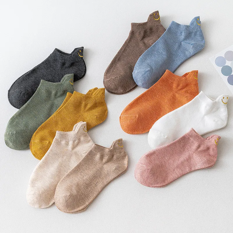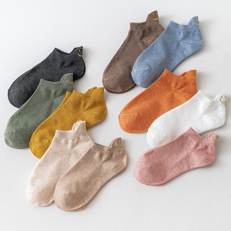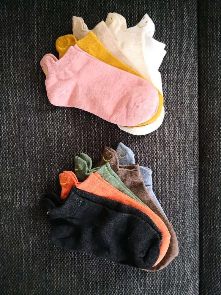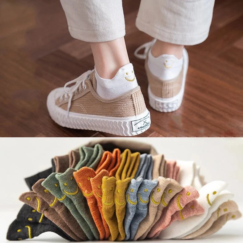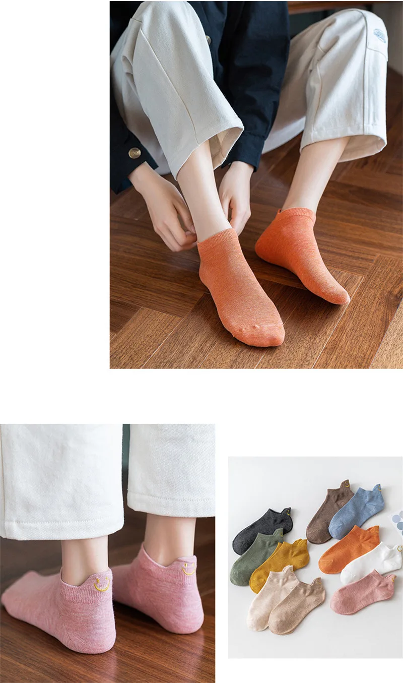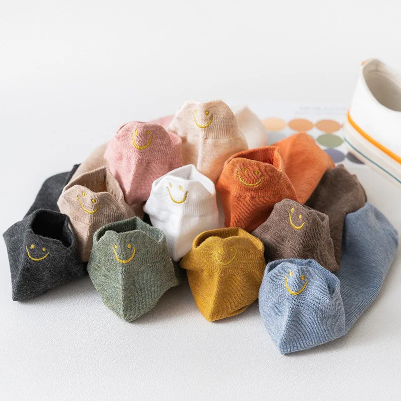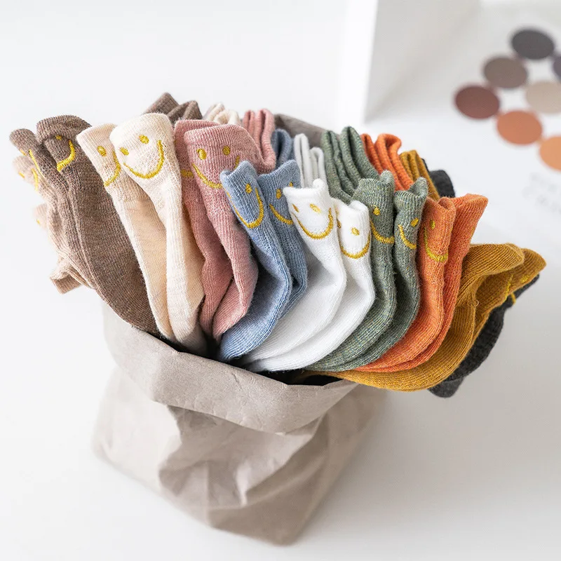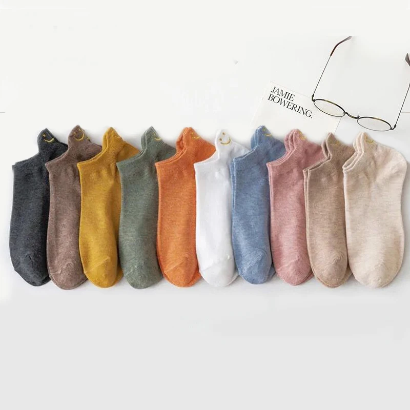 Носки хлопковые карамельных цветов для мужчин и женщин, Милая Вышивка, выражение улыбки, для взрослых, красные, 20 шт. = 10 паркомплект