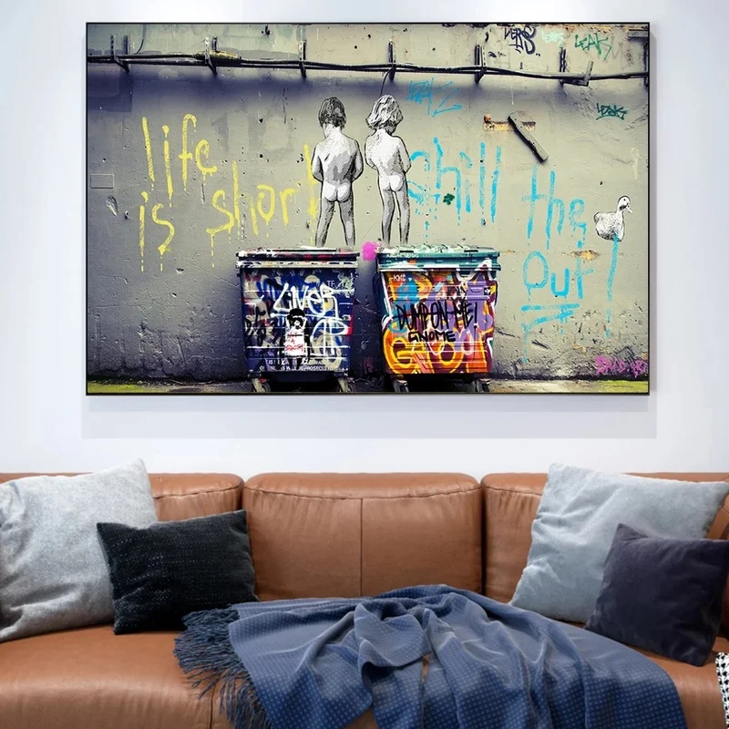 Бэнкси искусства жизнь коротка Chill утка из холст настенные картин...