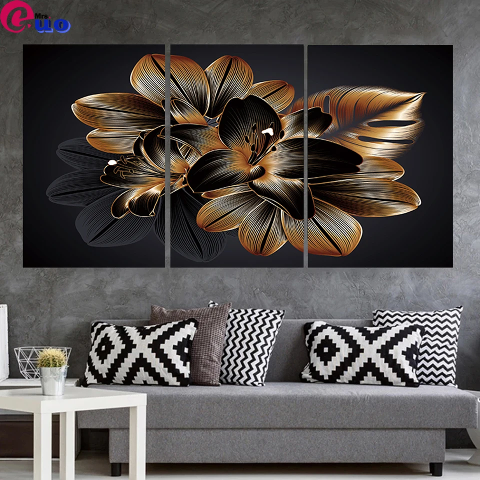 Алмазная живопись 3 шт.набор абстрактная Роскошная Цветочная мозаик...