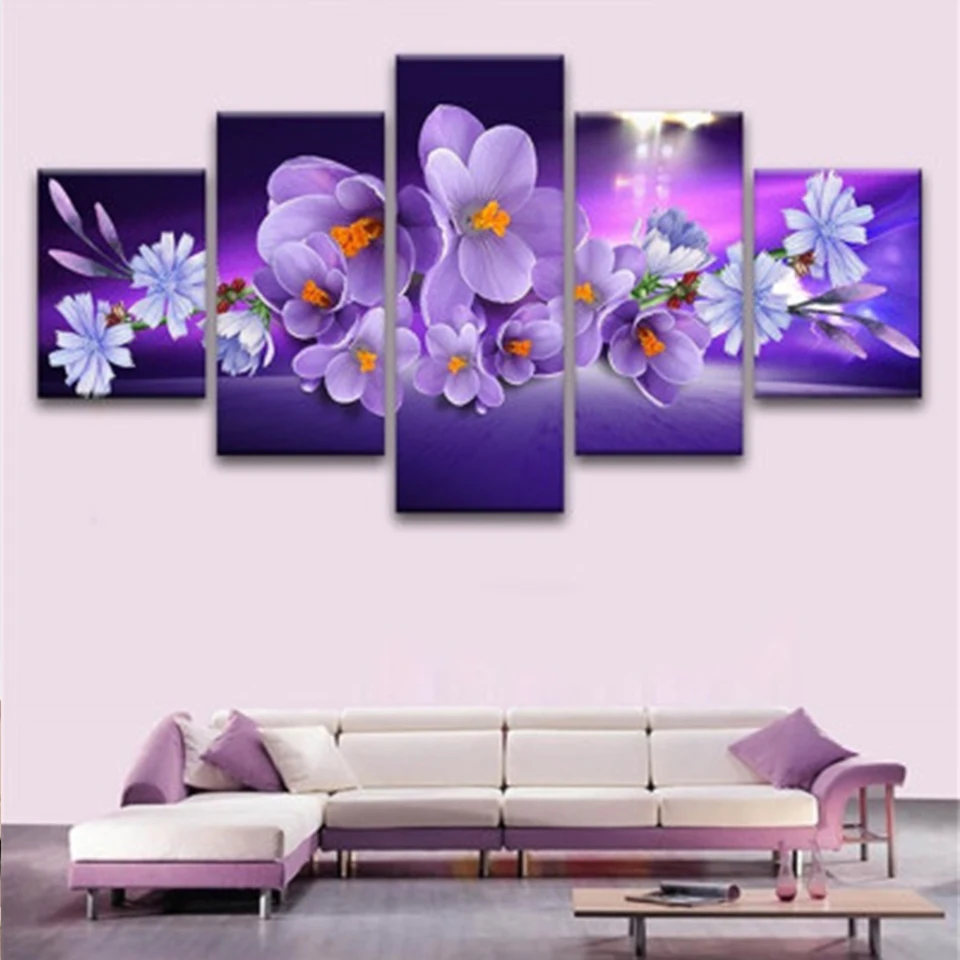 5d алмазная живопись, 5 шт., фиолетовая орхидея, настенное искусство, картина, Алмазная мозаика, полная квадратная круглая дрель, алмазная вышивка, распродажа,