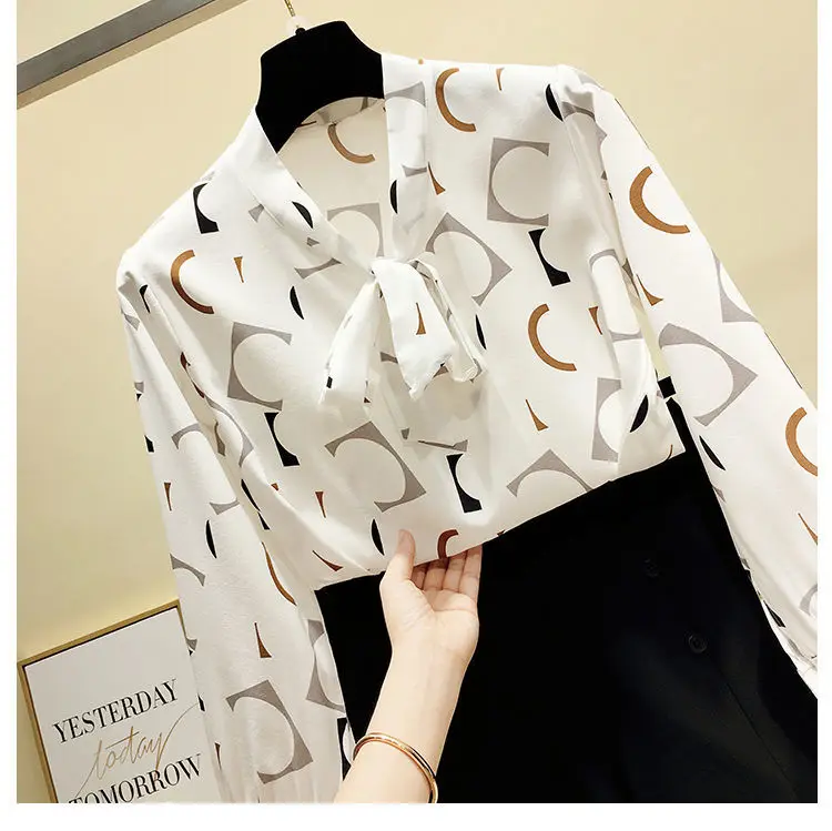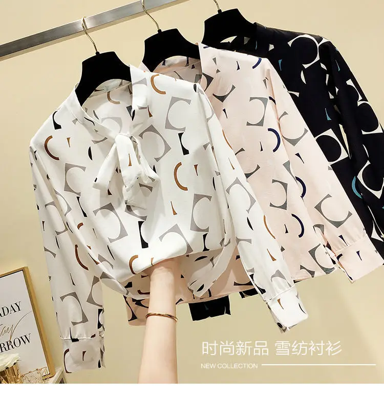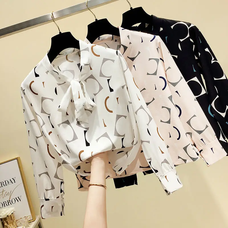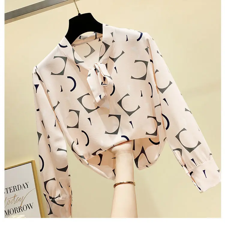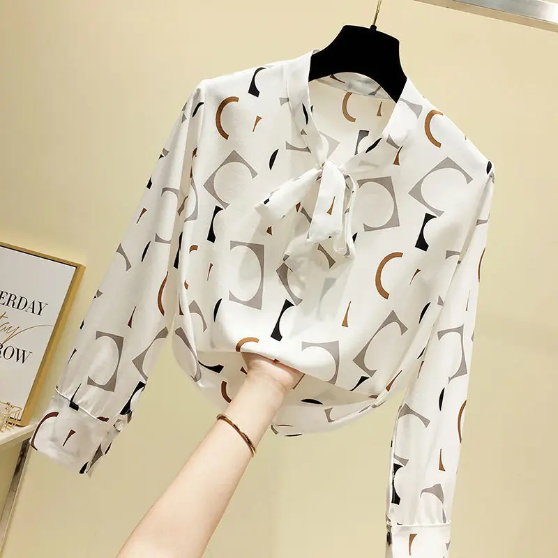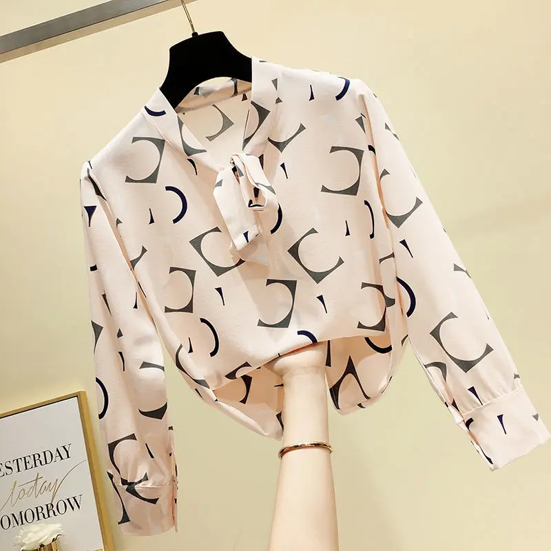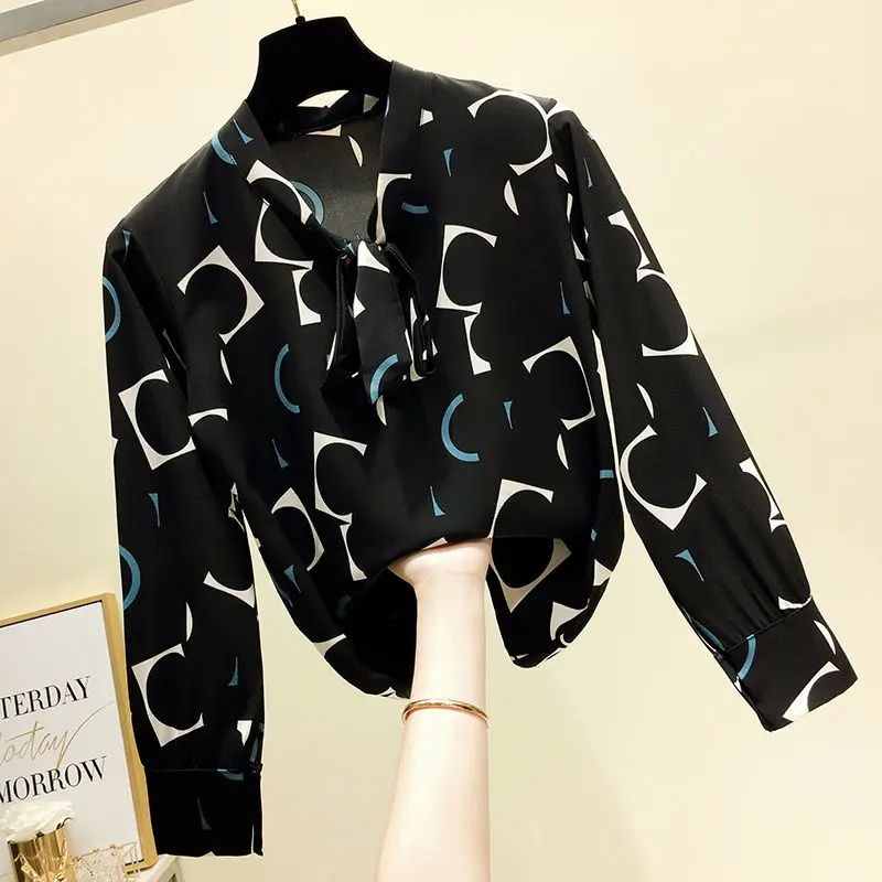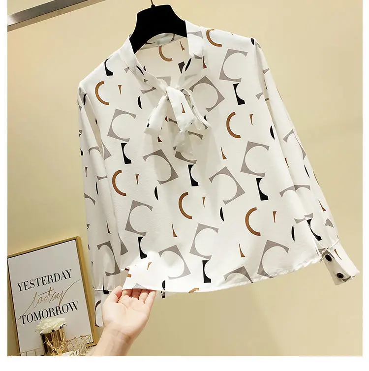 Блузка женская шифоновая рубашка Женская Весна-Осень Топ с принтом с длинным рукавом женская рубашка Blusas Mujer De Moda