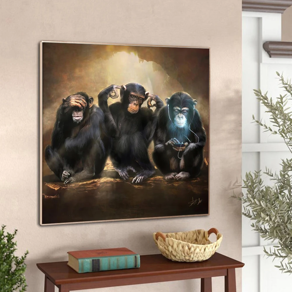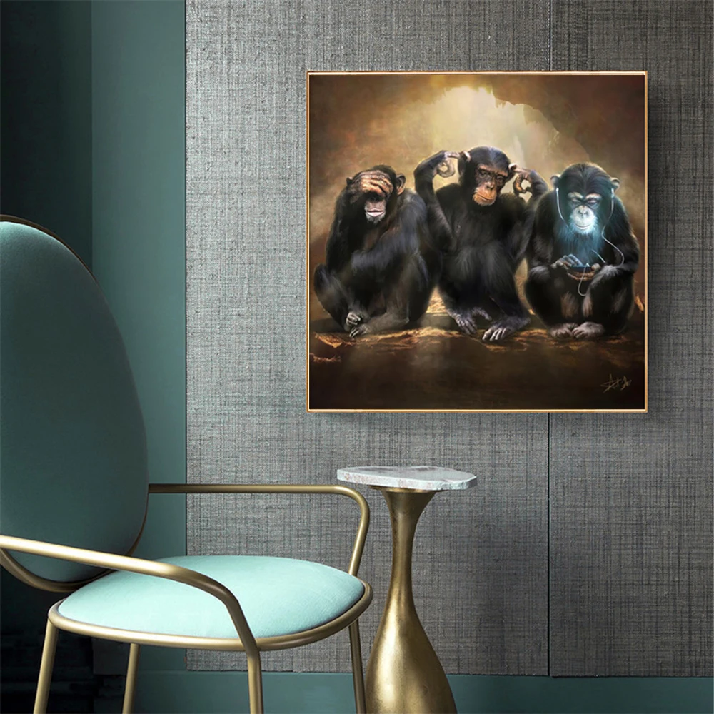Животные в ретро стиле арт партнер обезьяны холст для живописи Wall...