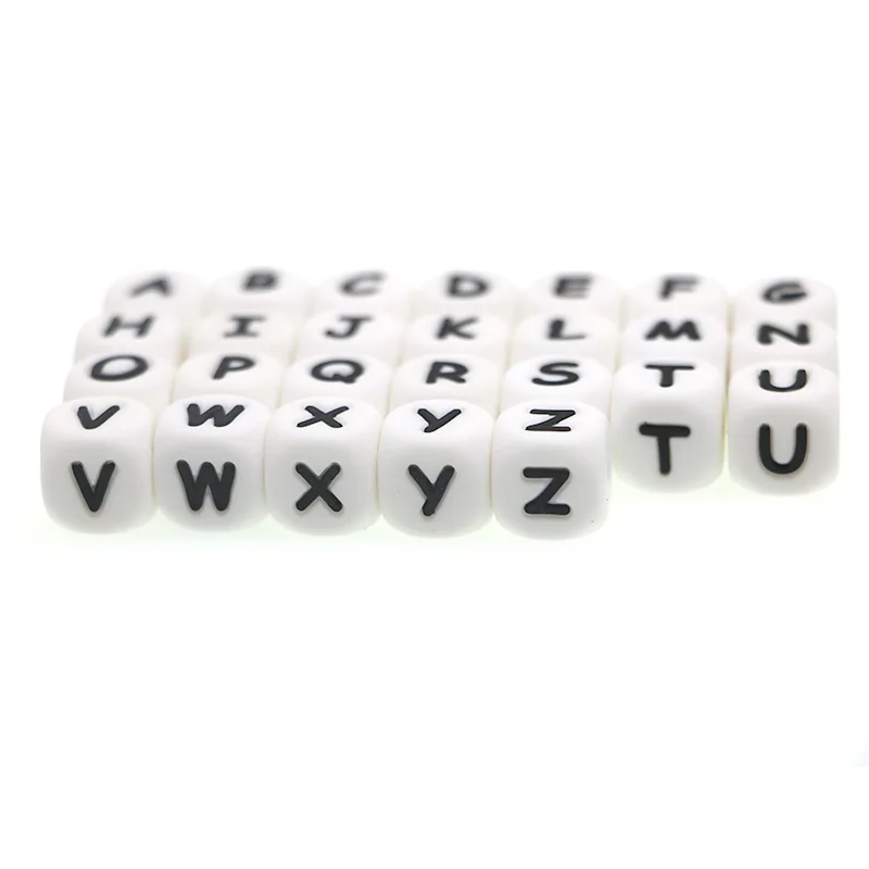 10 шт., силиконовые бусины в виде букв английского алфавита, 12 мм