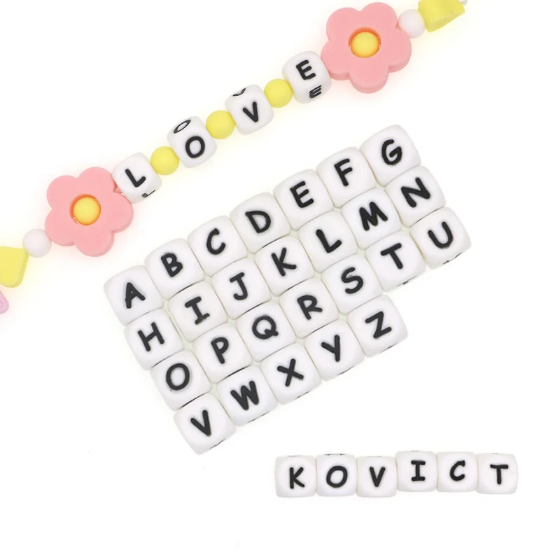 Kovict 100200500 шт. 10 мм Английский алфавит силиконовые буквы бус...