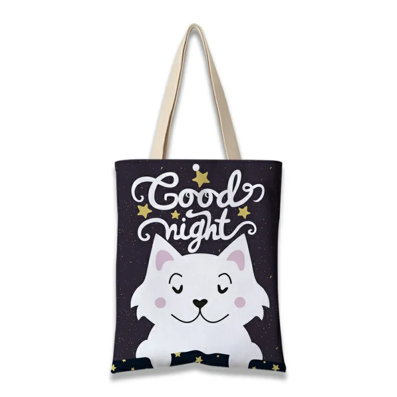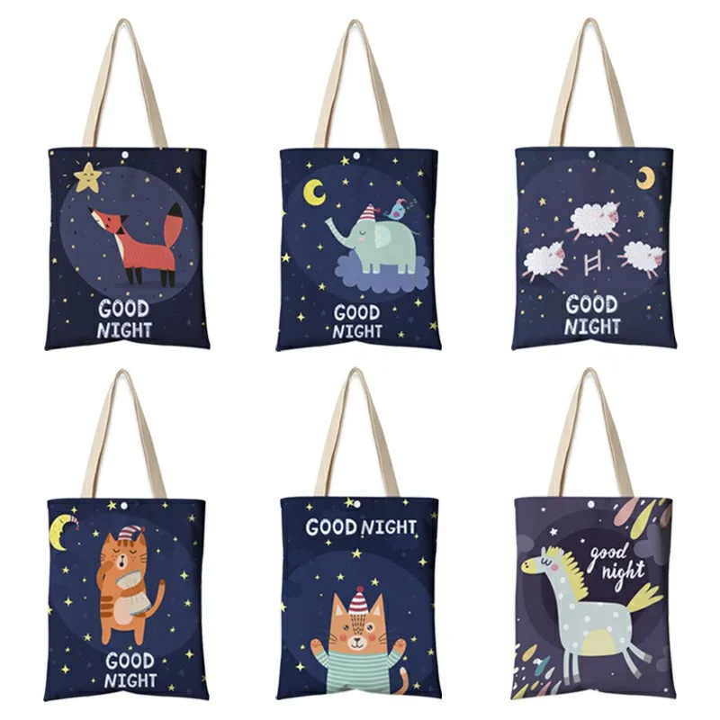 Тканевая сумка-тоут для покупок Good Night, прекрасный мультяшный рисунок животных, многоразовый мешок на плечо для студентов, друзей