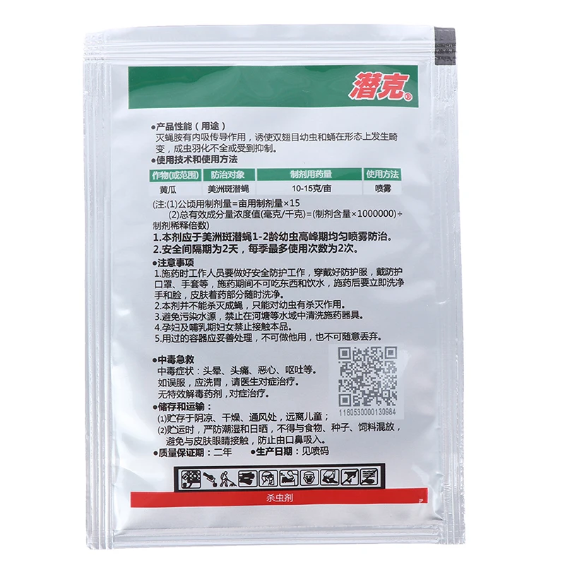 Параметры:Тип вредителей: мухиНомер модели: CyromazineХимическая формула: C6H10N6Емкость: 4gЧистота: 75%Инструкции: 1:4L вода