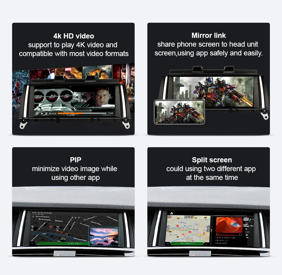 >>> поддержка воспроизведения 4K видео и компиляции с большинством видео форматов >>> Зеркальная ссылка, разделите экран телефона iphone / android на экран головного устройства, используя приложения безопасно и безопасно. >>> PIP. может минимизировать видеоизображение при использовании другого приложения. >>> Режим разделенного экрана. может использовать два разных приложения одновременно.