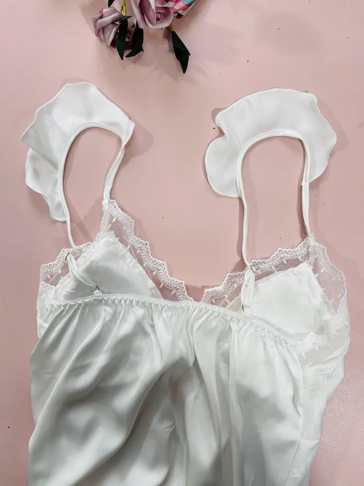 Комплект женского нижнего белья, короткий, атласный, с кружевами