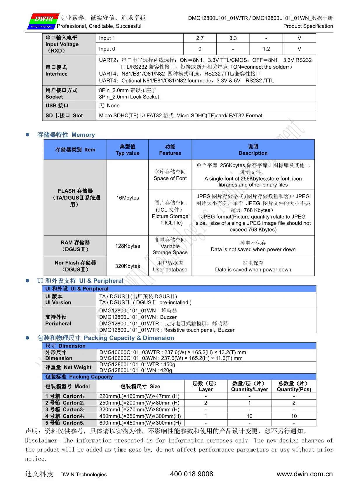DMG12800L101_01W-это интеллектуальный TFT ЖК-модуль с UART портом, который может управляться любым MCU через простой мощный командный набор. Таким образом, он может использоваться в качестве цветного TFT дисплея и сенсорного контроллера в различном электронном оборудовании.Он включает в себя ЦП, драйвер TFT, флэш-память, порт UART, источник питания и так далее, важно, что он имеет готовую базовую программу управления и мощное программное обеспечение дизайна, так что это может уменьшить много времени разработки и затрат для инженеров.