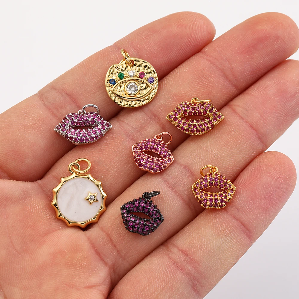 Лидер продаж, подвески в виде губ для изготовления ювелирных изделий, золотые солнцезащитные глаза, дизайнерские ювелирные изделия, подвески для сделай сам, серьги, ожерелье, браслет, подвеска из меди