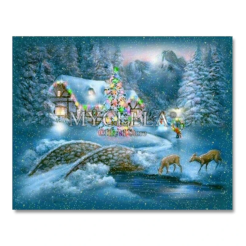 Полностью Стразы Алмазная вышивка 5d Diy Алмазная картина ручной с инкрустацией мозаика вышивка крестом ремесло новогодний Снежный дом Рождественская елка (DT184)