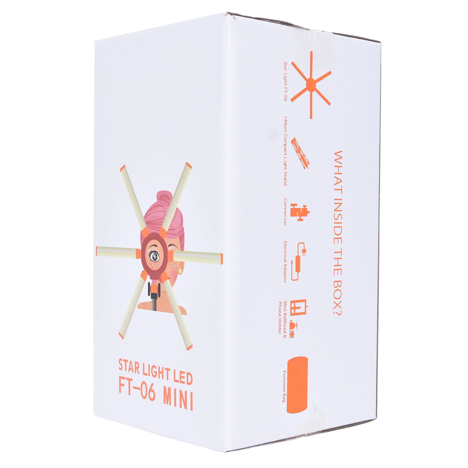 Инструкция по использованиюFOSOTO FT-06 мини мультимедийный Экстремальный светодиодный звездный свет ярче, чем кольцевой свет, оснащен шестью регулируемыми световыми полосами, которые могут увеличить проекцию света и дальность света, чтобы обеспечить вас фотографией, прямая трансляция, YouTube live, макияж красоты, селфи и видео обеспечивают больше света.Регулируемая световая планка: вы можете отрегулировать световую планку для любой формы по желанию. Если вы хотите, чтобы у вашего света было специальное освещение, вы можете зафиксировать все освещение с одной стороны или разогнуть источник света. Это очень полезно для пушистых комнат.60 Вт Высокая мощность: оснащен 288 SMD лампами, яркость яркая, чем у обычных кольцевых огней. Индекс цветопередачи/LCI> 97 +, он может издавать красивый чистый свет-нет пульса при нормальной скорости съемки. Обеспечивает очень точное качество цвета и высокий люмен.ЖК-дисплей: высокотехнологичный ЖК-дисплей, точная цветовая температура дисплея, яркость и Время работы батареи, так что вы можете точно знать цветовую температуру, яркость при использовании.Порт USB: не беспокойтесь о том, что ваш телефон разрядится, когда вы живете.Отличительный свет: звездный свет, который делает ваши глаза сиять, как звездный светПластина аккумулятора: Sony NP-F Серия: NP-F750; NP-F550; NP-F950/BЛампу можно использовать для батареек, так что вы можете использовать лампу на открытом воздухе(Примечание: аккумулятор не входит, вы можете купить его в вашей стране)Спецификация:Источник света: 2835 LED SMDКоличество светодиодов: 288 шт.Входная мощность: 100-230 В 50 Гц/60 ГцВыходная мощность: 60 ВтУльтратонкое естественное освещение CRI:97Размер: 140*140*310 ммПолностью разложенный Размер: 640*640*28 ммЦветовая температура: 3200-5600kСветовой поток: 6000LMРегулировка яркости: ДаДиапазон затемнения: 10%-100%Переходник: УниверсальныйВ комплект входит:1 * Светодиодный звездный свет1 * сумка1 * держатель для мобильного телефона1 * шаровой головкой1 * Адаптер питания1 * Разъем1 * Руководство пользователя1 * штатив-Трипод стойка1 * коробка