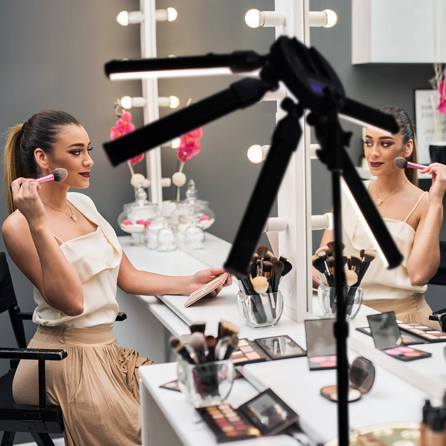 С помощью аксессуаров, зеркало для макияжа (не входит в комплект), камера, смартфон можно установить на кольцевой лампе для видео в реальном времени, записи видео и фотосъемки.