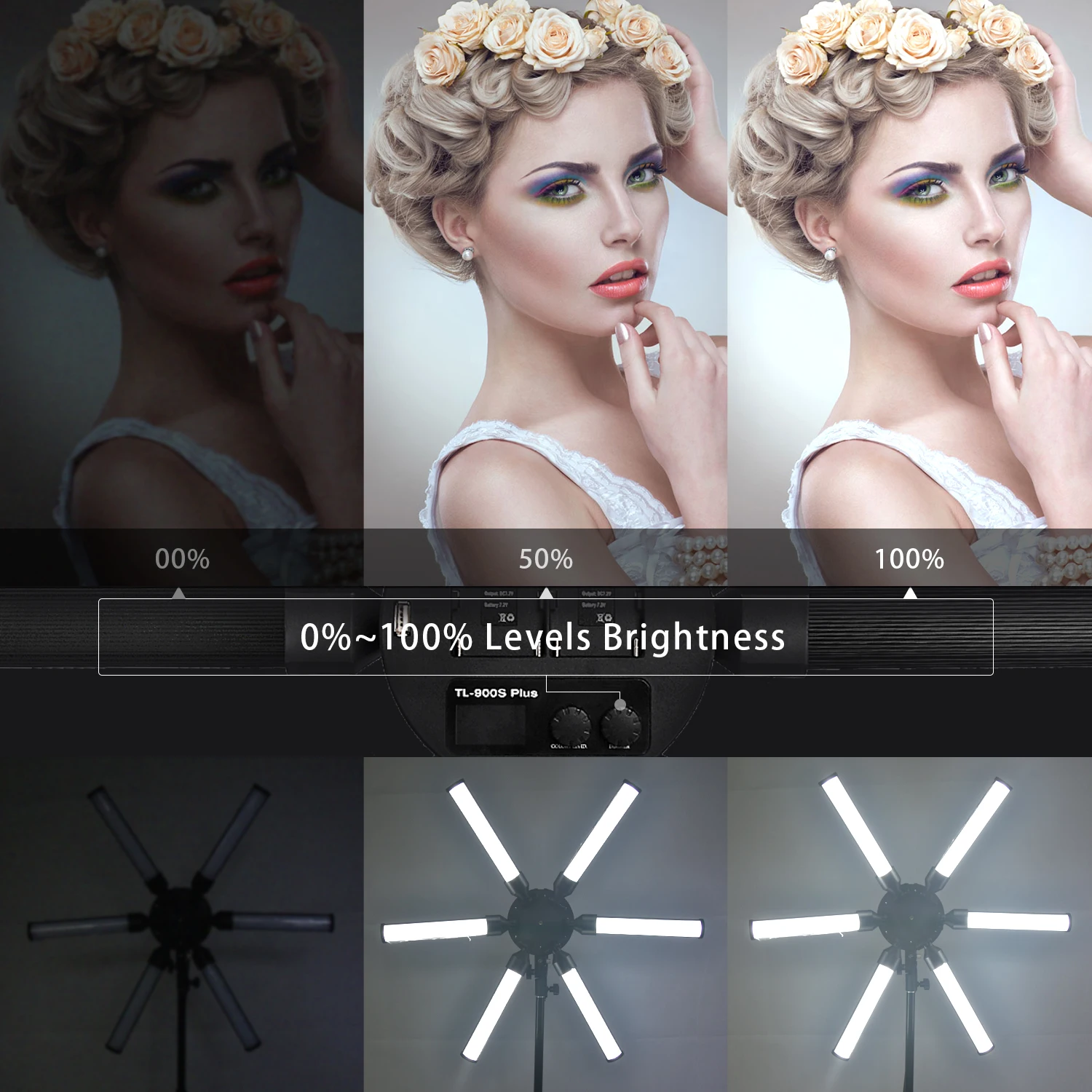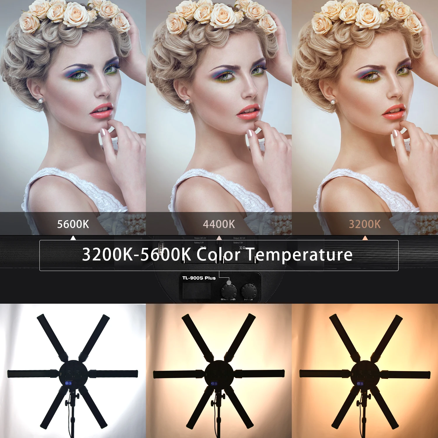 Цветовая температура от 3200 к до 5600 к, FT-900s plus star Лампа изготовлена из 2835 светодиодов SMD с индексом цветопередачи до 97, что делает изображения более реалистичными