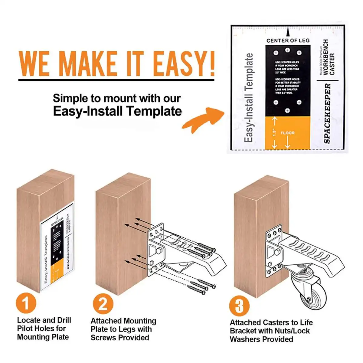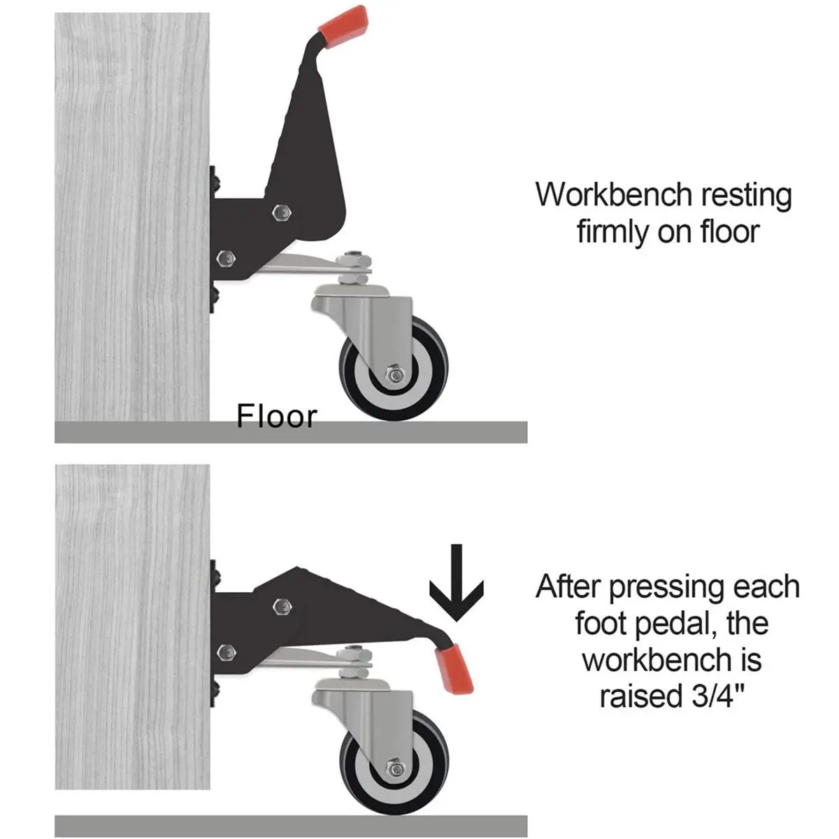 Описание: Сверхмощный 660 LBS верстак колесики набор выдвижной колесики для верстака машин и столов