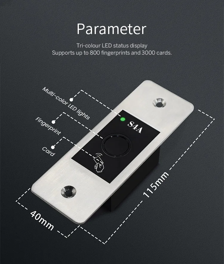 Устройство представляет собой мини-металлический чехол, Автономный RFID/контроль доступа по отпечаткам пальцев со встроенным дизайном, поддержка 125 кГц EM карты. Это идеальный выбор для установки на дверной раме.