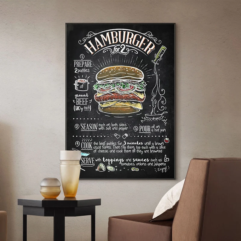 Гамбургер пицца быстрое питание настенный кухонный арт Cafe домашне...