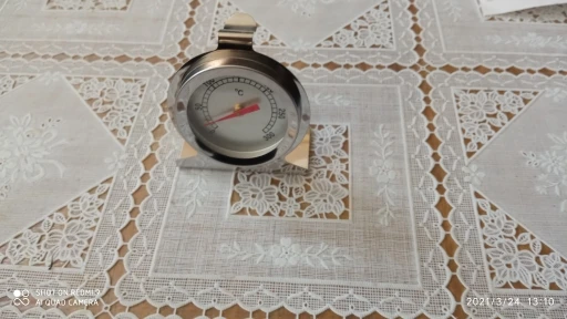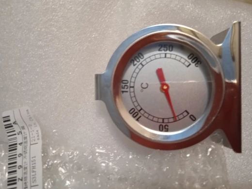 Термометр пришел в целости и сохранности. Испытание в духовке прошел- выдает правильные показания. Удобен при размещении в духовке- можно поставить на решетку, а можно подвесить на эту же решетку.