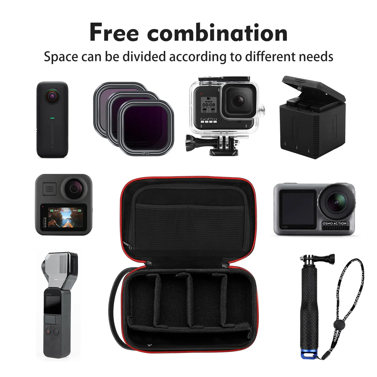 TELESIN Портативная сумка для хранения водонепроницаемый чехол регулируемое пространство для GoPro 10 9 8 7 6 SJCAM Yi DJI Osmo аксессуары для экшн-камеры