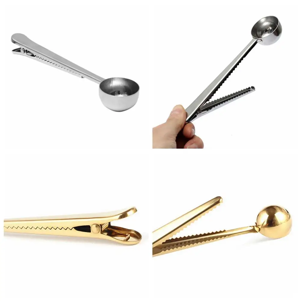 Ложка-ложка для кофе из нержавеющей стали с зажимом для пакета, кух...